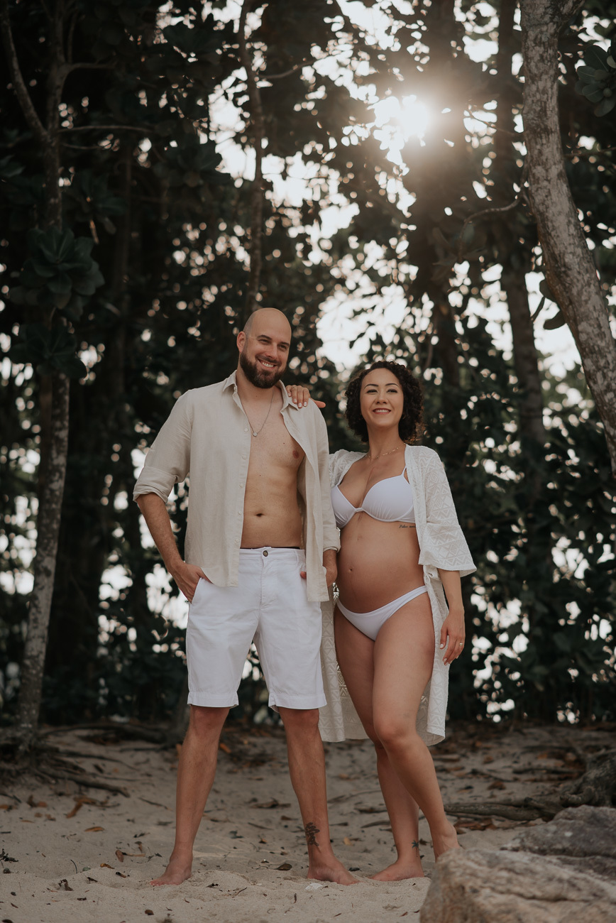 Fizemos as fotos de gestante da Olivia na praia de Camburi, localizado no litoral norte de SP, na cidade de São Sebastião.