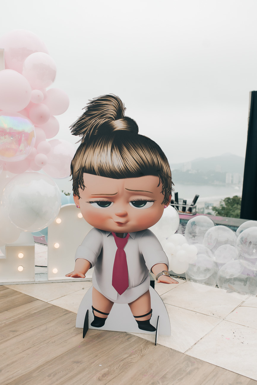 O chá revelação teve o tema poderoso ou poderosa chefinha, achei fantástica a idéia do tema, deu um toque bem legal na decoração.