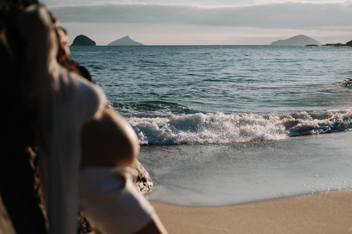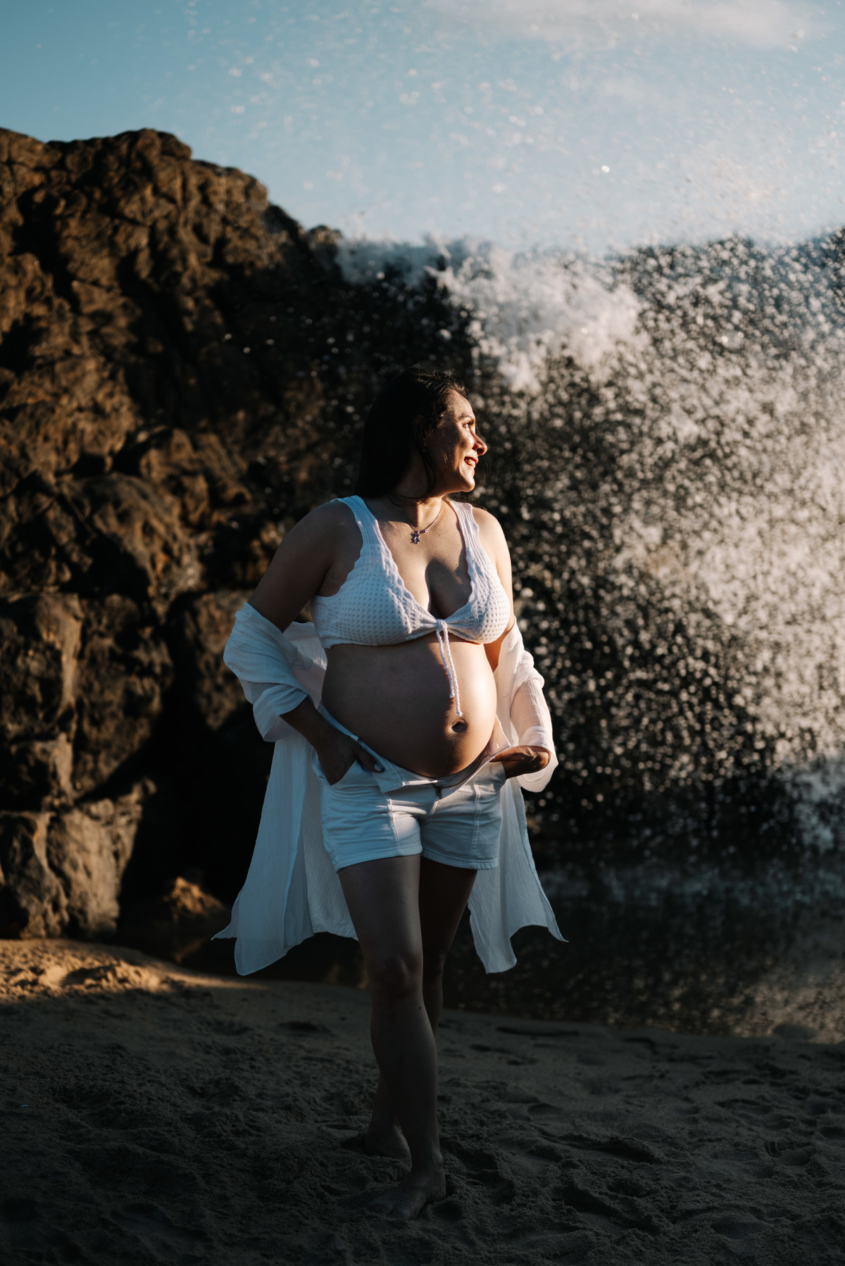Boiçucanga é uma das praias mais procuradas para ensaio gestante no litoral norte de São Paulo, tanto pela facilidade de acesso quanto pela variedade de cenários em um mesmo local.