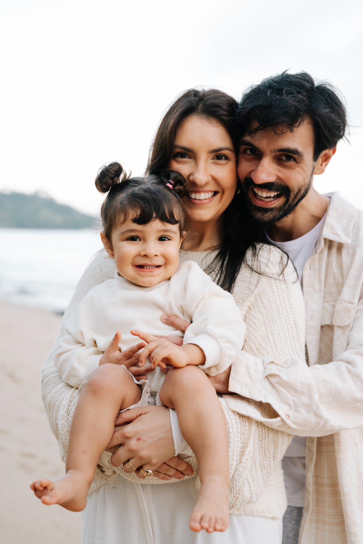 A Gabi, o Yann e a pequena Elis escolheram a Praia do Óscar como cenário para guardar mais um capítulo da história deles e a escolha não foi à toa. Essa praia faz parte da vida da família, carrega lembranças e tem aquele jeitinho acolhedor que só Ilhabela tem.