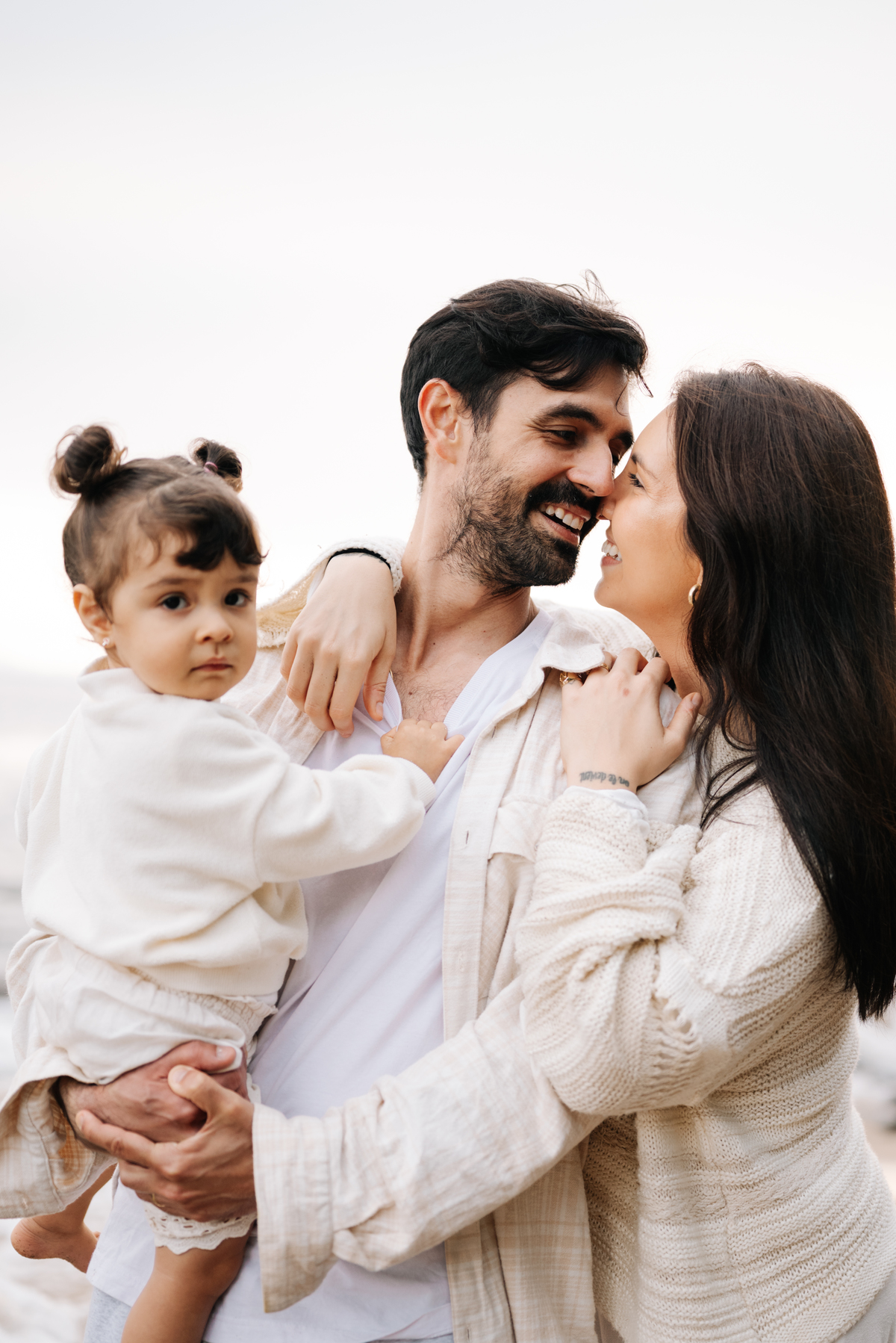 Mesmo com o friozinho da manhã, o ensaio foi leve, verdadeiro e cheio de conexão. A Elis, com quase dois aninhos, chegou sem saber muito o que esperar... mas bastaram alguns passinhos na areia para o clima mudar. Teve abraço, teve riso, teve bagunça boa.