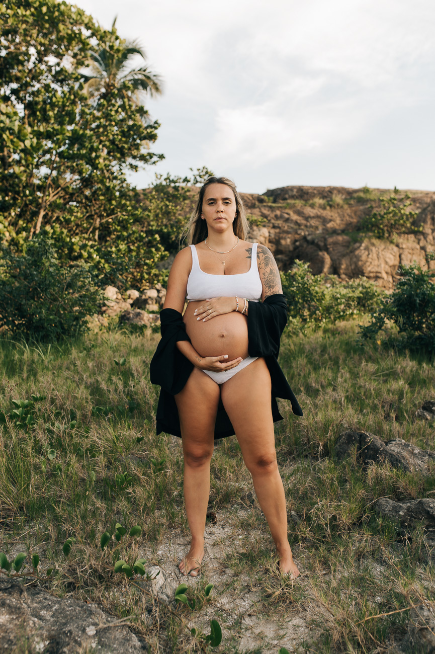 A Bárbara e o Gabriel toparam fazer as fotos da gestação nas Ilhas, para chegar lá é necessário atravessar de barco, com maré boa são 5 minutinhos de Juquehy.