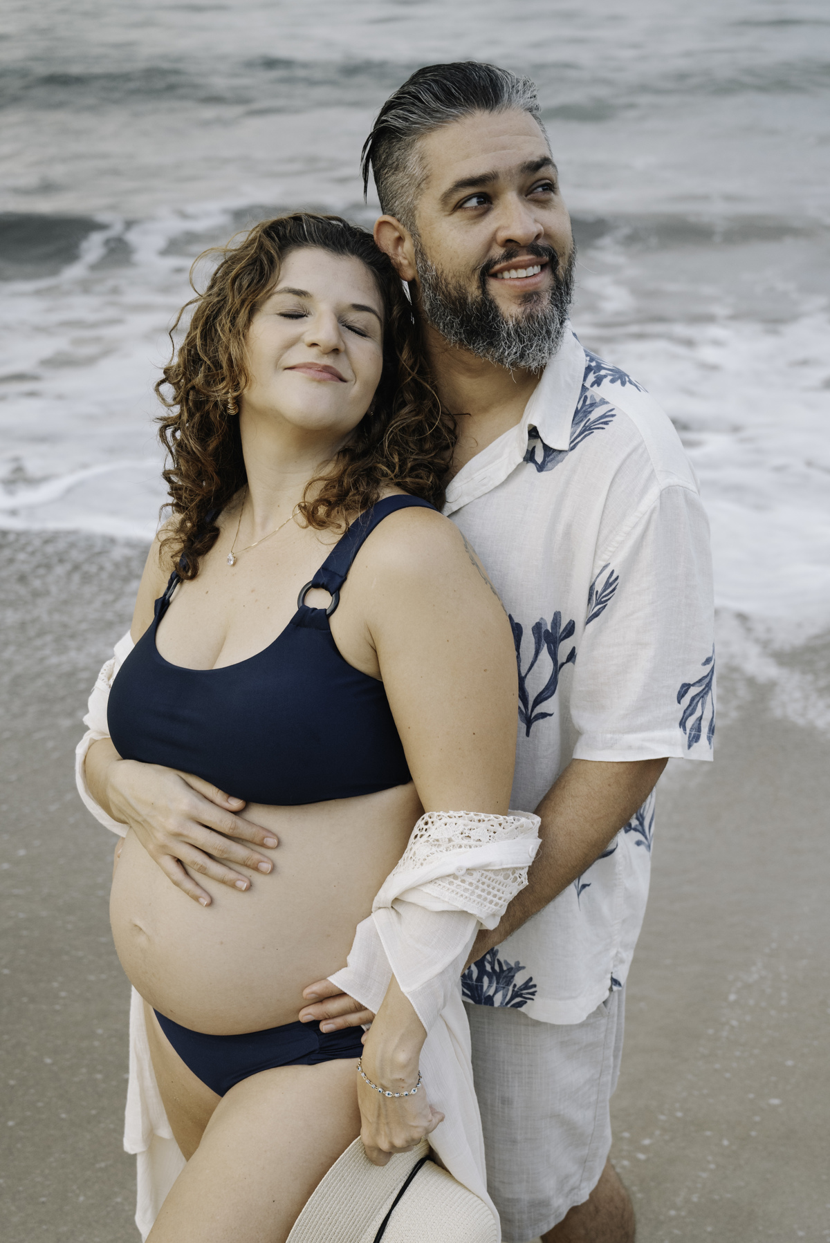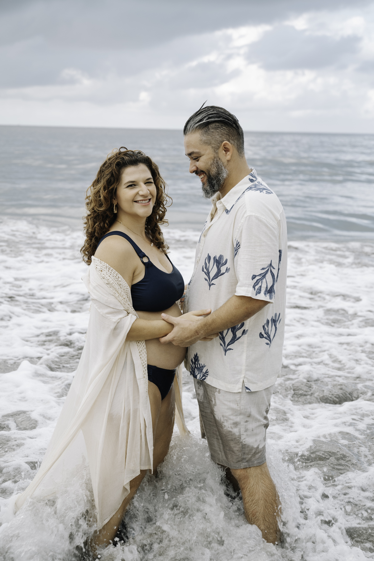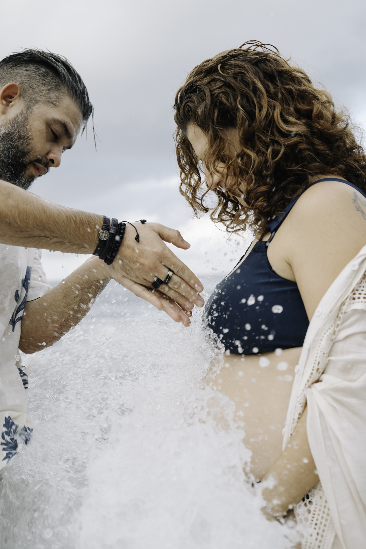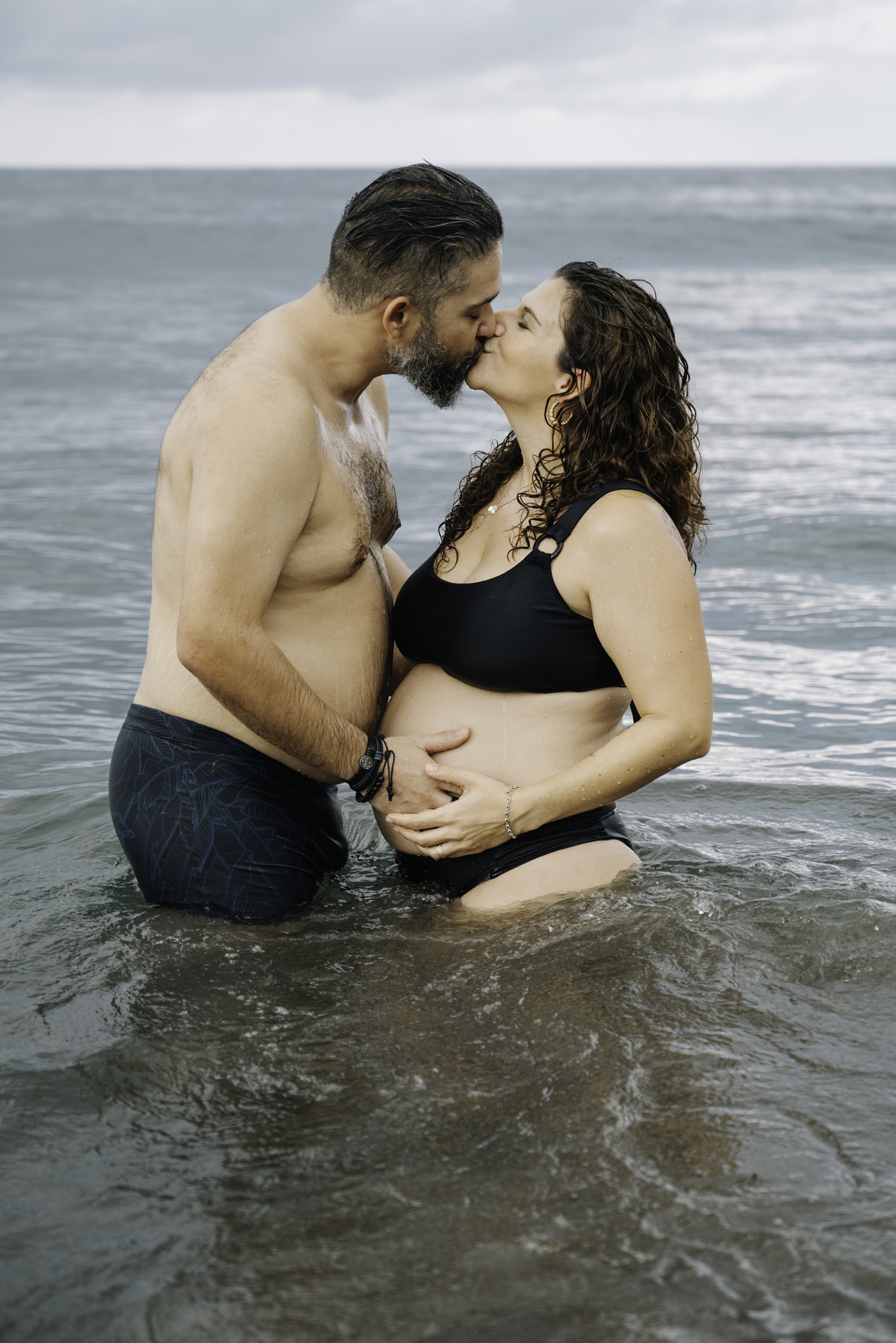 Uma sessão para guardar a gravidez da Ana e do João de forma leve, cheia de personalidade, banho de mar, futvôlei e boas risadas.