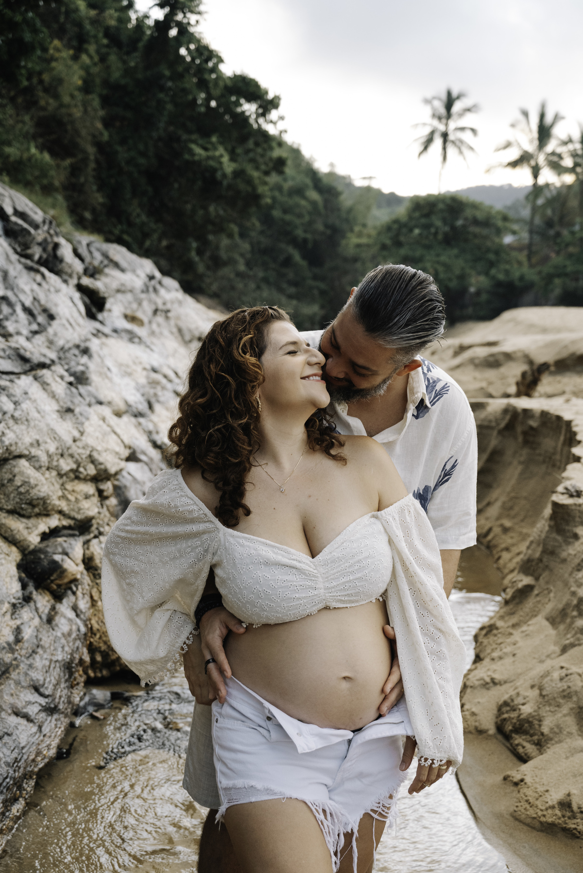 Os registros da gestação da Ana e do João precisava ser na praia. O casal tem toda conexão, em especial, com as praias de São Sebastião.