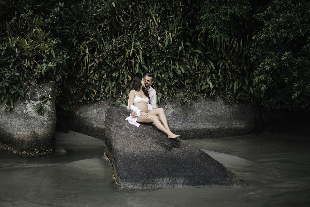 A praia de Itaguaré tem esse poder: cercada por natureza, entre o rio e o mar, ela é tranquila, preservada e perfeita para ensaios gestantes ao ar livre, especialmente para quem busca um registro com essência, longe do óbvio.
