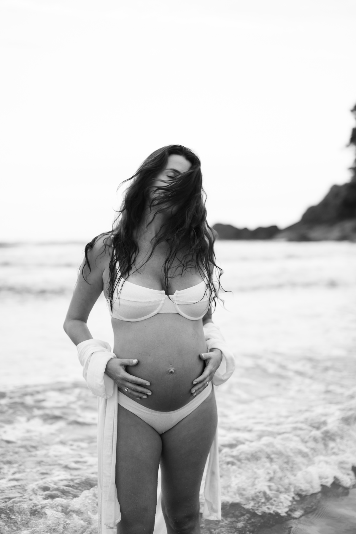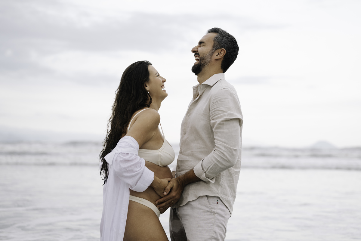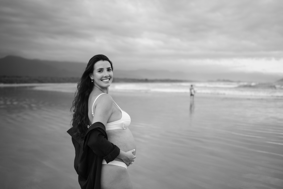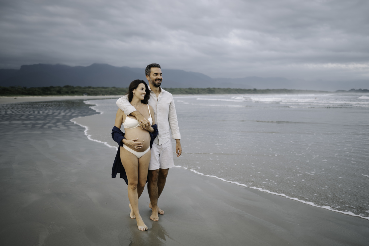 Ensaio Gestante na Praia de Itaguaré – Um registro leve e cheio de verdade