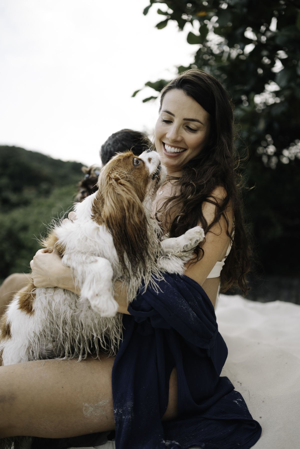 A praia de Itaguaré, que fica bem pertinho de Riviera de São Lourenço, foi o cenário escolhido para registrar a espera pelo Luca, acompanhados, é claro, pelos dois cãezinhos da família, que fizeram parte de cada momento.