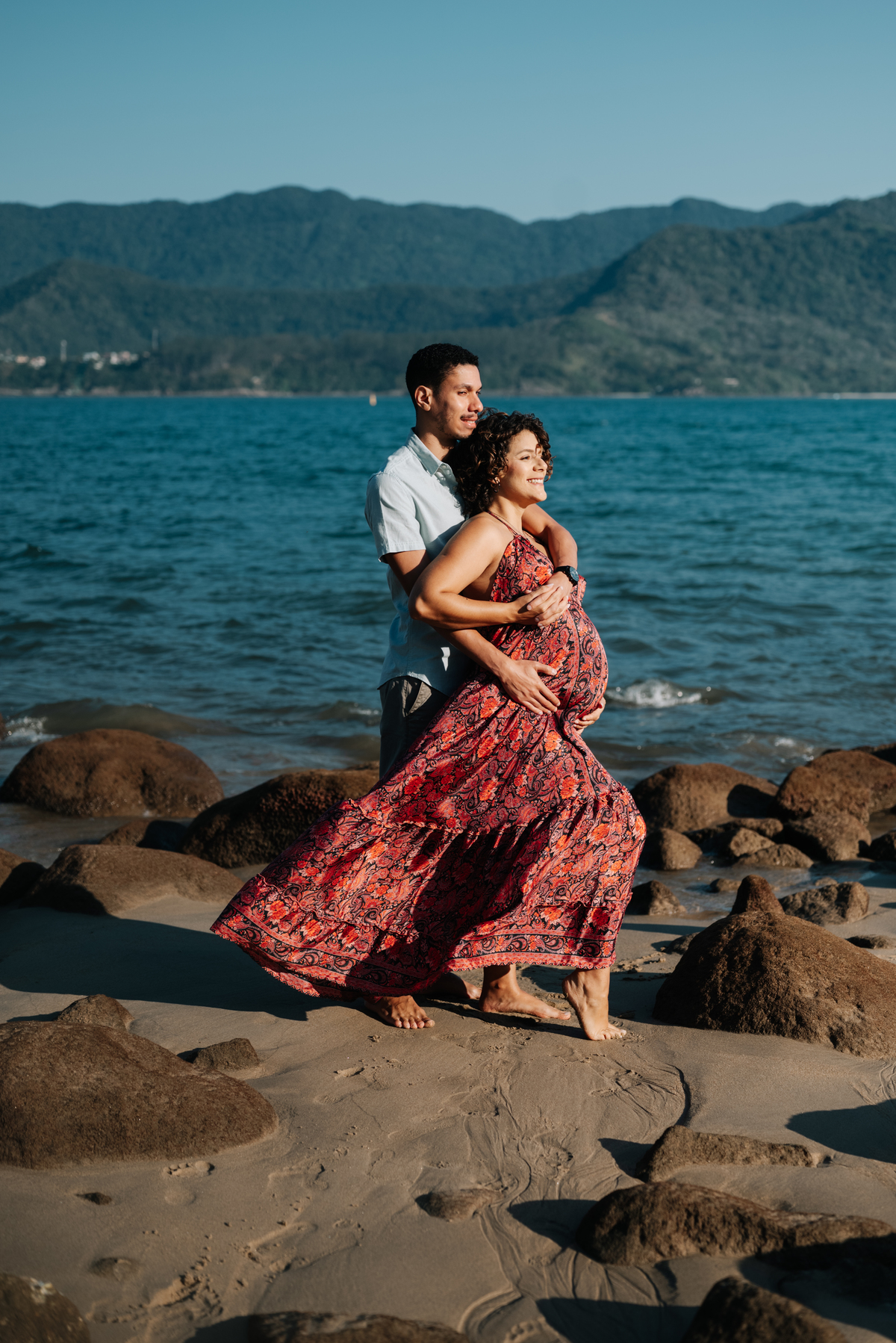 O ensaio gestante é uma forma de eternizar memórias que serão revisitadas com carinho no futuro. A Praia da Feiticeira em Ilhabela oferece o cenário perfeito para quem busca fotos naturais, leves e cheias de significado.