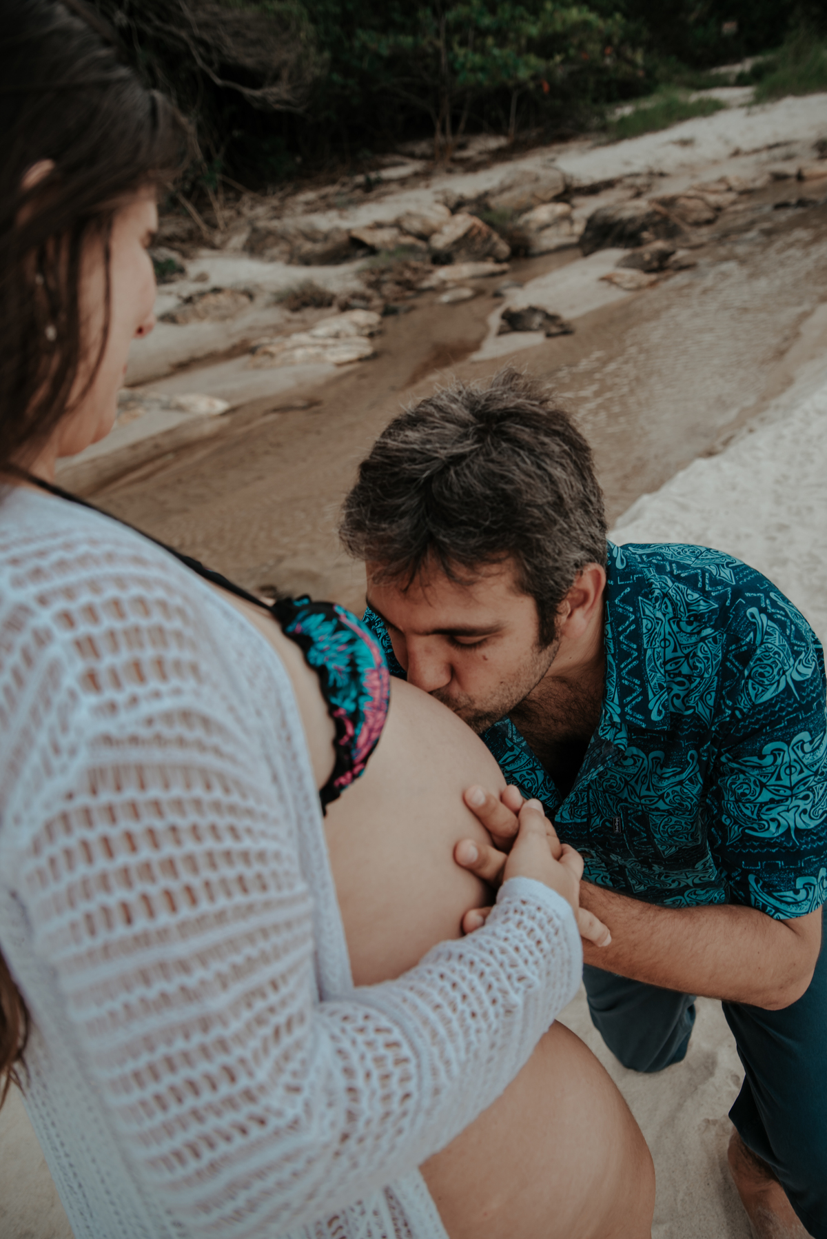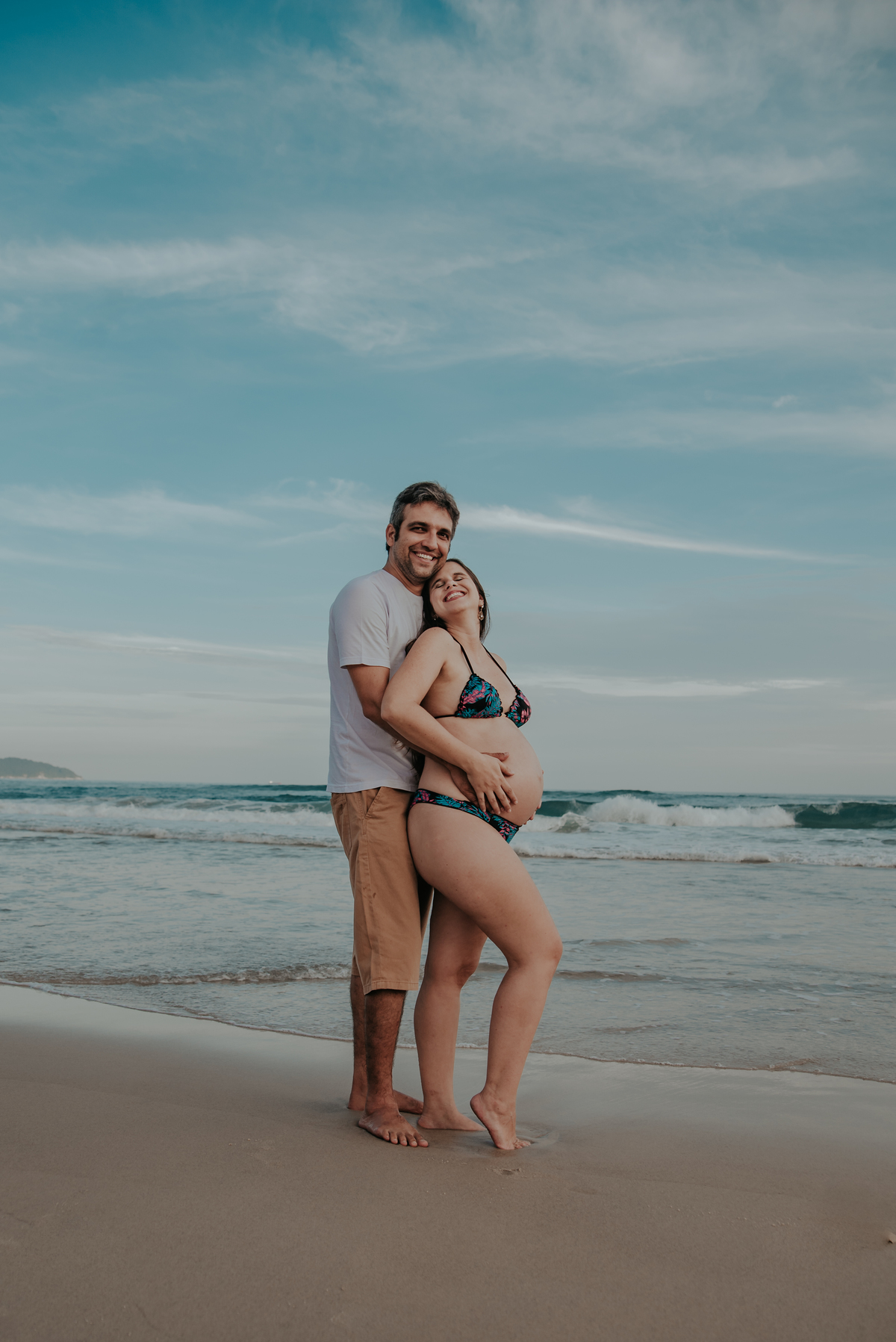 A Mari nos procurou dizendo que não se identificava com as fotos tradicionais de estúdio e por isso nem tinha cogitado em fazer o ensaio gestante, afinal ela não se via nesse estilo de fotos, mas que após o alerta e a insistência da sua ginecologista sobre a importância em fazer o ensaio gestante, que ela certamente iria se arrepender se não registrasse a gravidez, a Mari decidiu fazer as fotos de grávida, foi quando nos procurou contando um pouquinho da sua história. De imediato ela já foi falando que ela só se via fazendo as fotos na praia, porque eles tem uma ligação forte e tem toda uma história do casal envolvendo praia.