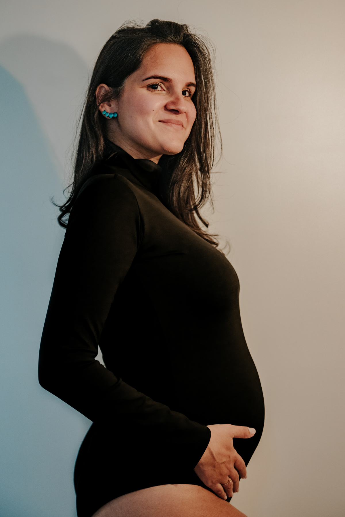 A Giullia idealizou seu ensaio em um ambiente moderno e clean. Apesar de terem recém se mudado e o apartamento ainda sem mobília, a Giu confiou na gente e fizemos o ensaio gestante em casa e o resultado foi sensacional,