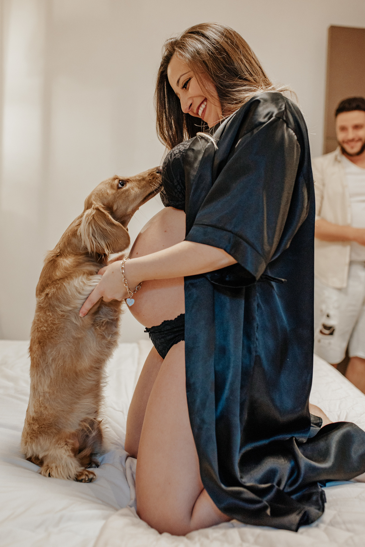 Registrar a gravidez em casa tem todo o seu encanto, seja na sua casa ou de alguém da sua família, traz lembranças e memórias afetivas que enriquecem essa recordação.