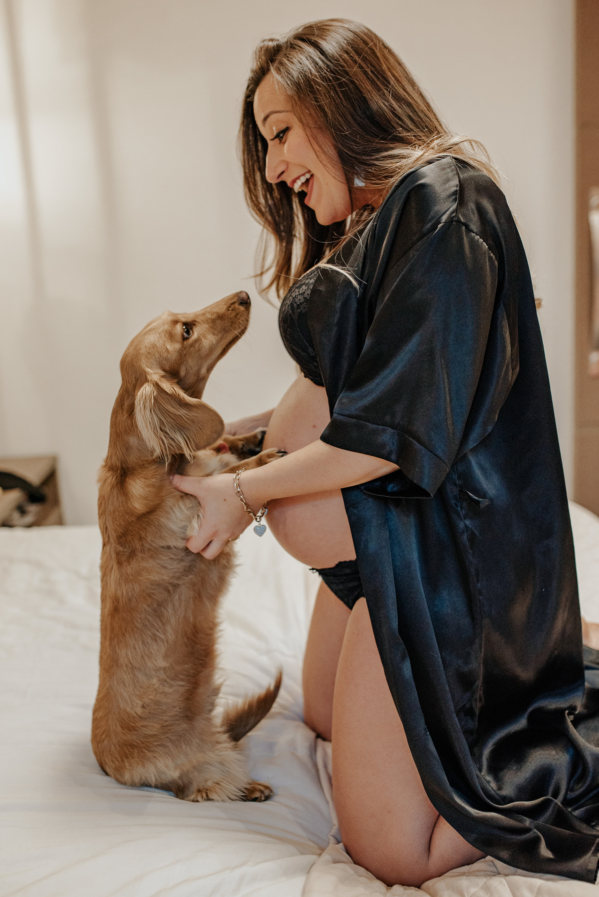 Documentamos toda essa interação entre eles, inclusive com os membros de quatro patas que fazem parte da família, e claro que também fizemos fotos da barriguinha das irmãs.