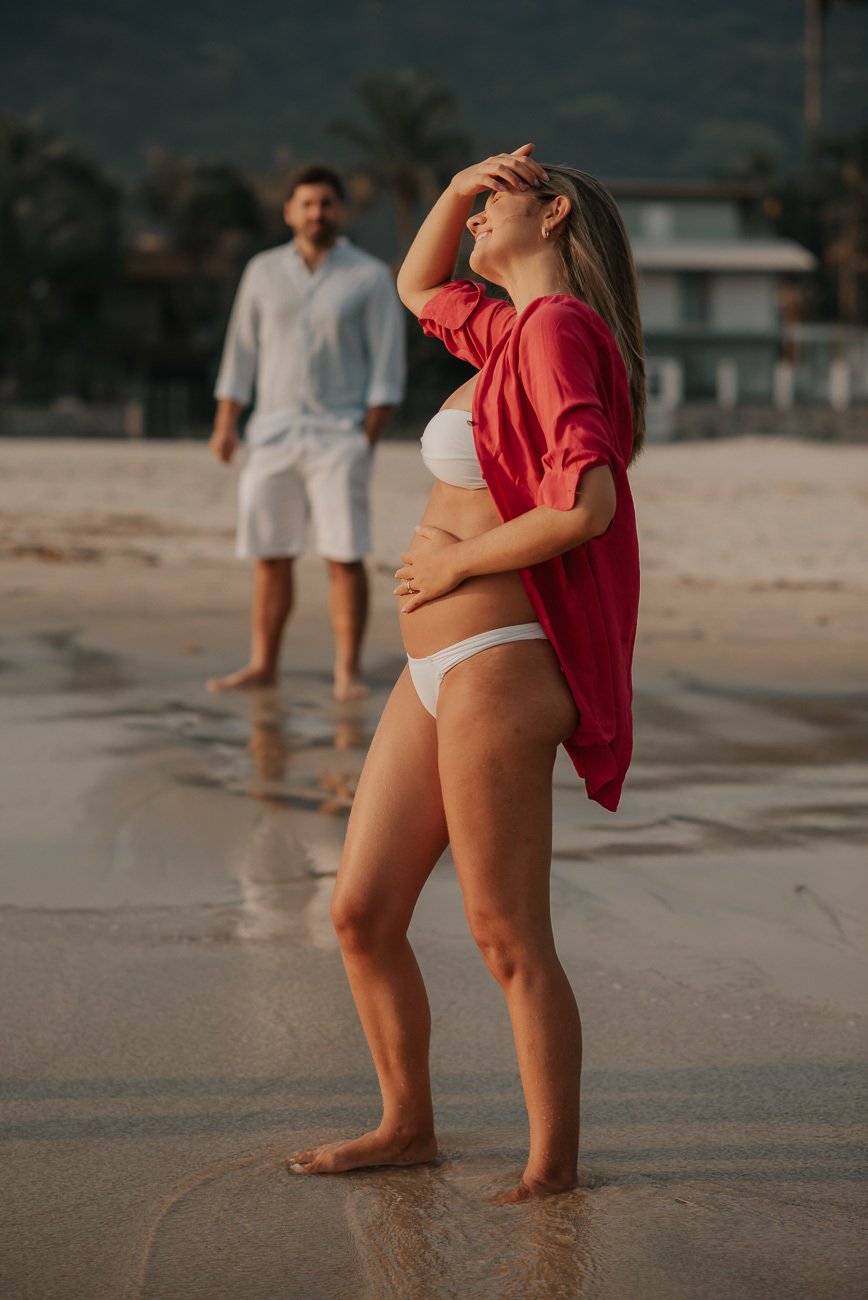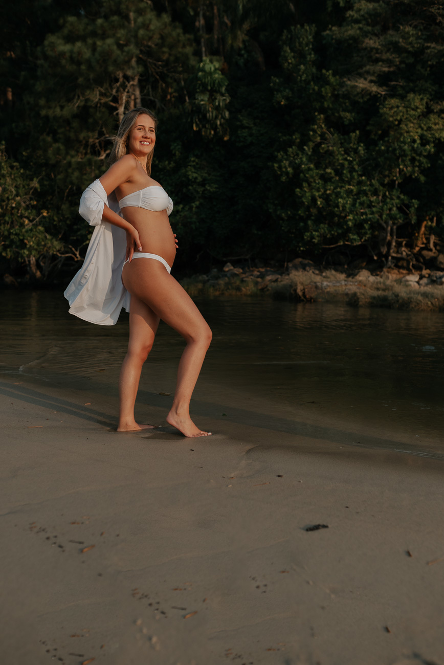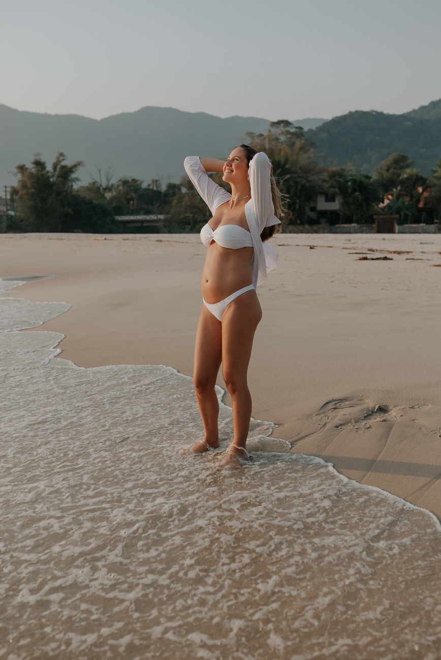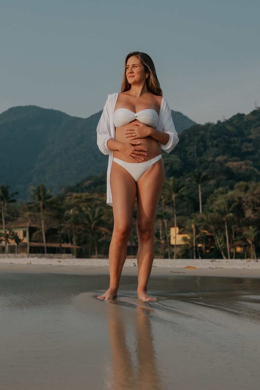 Mari, mineira linda demais, que ama uma praia e não poderia deixar de registrar essa fase da gestação numa praia linda como a de Maresias, localizado em São Sebastião, litoral norte de SP.