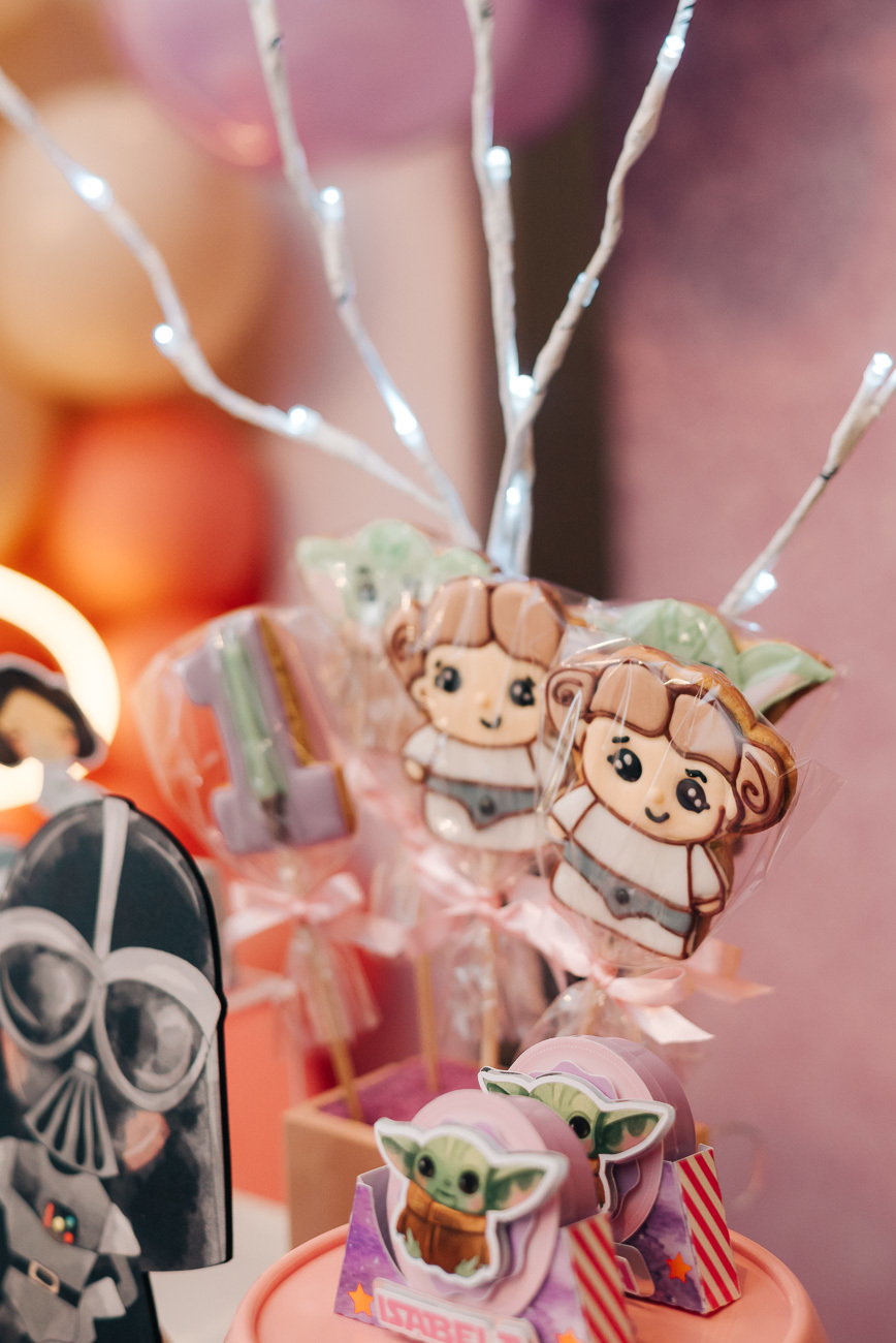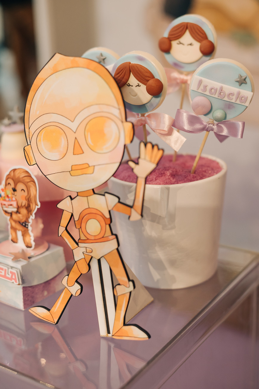 O tema foi a princesa Leia do filme Star Wars e a própria princesa compareceu a festa!