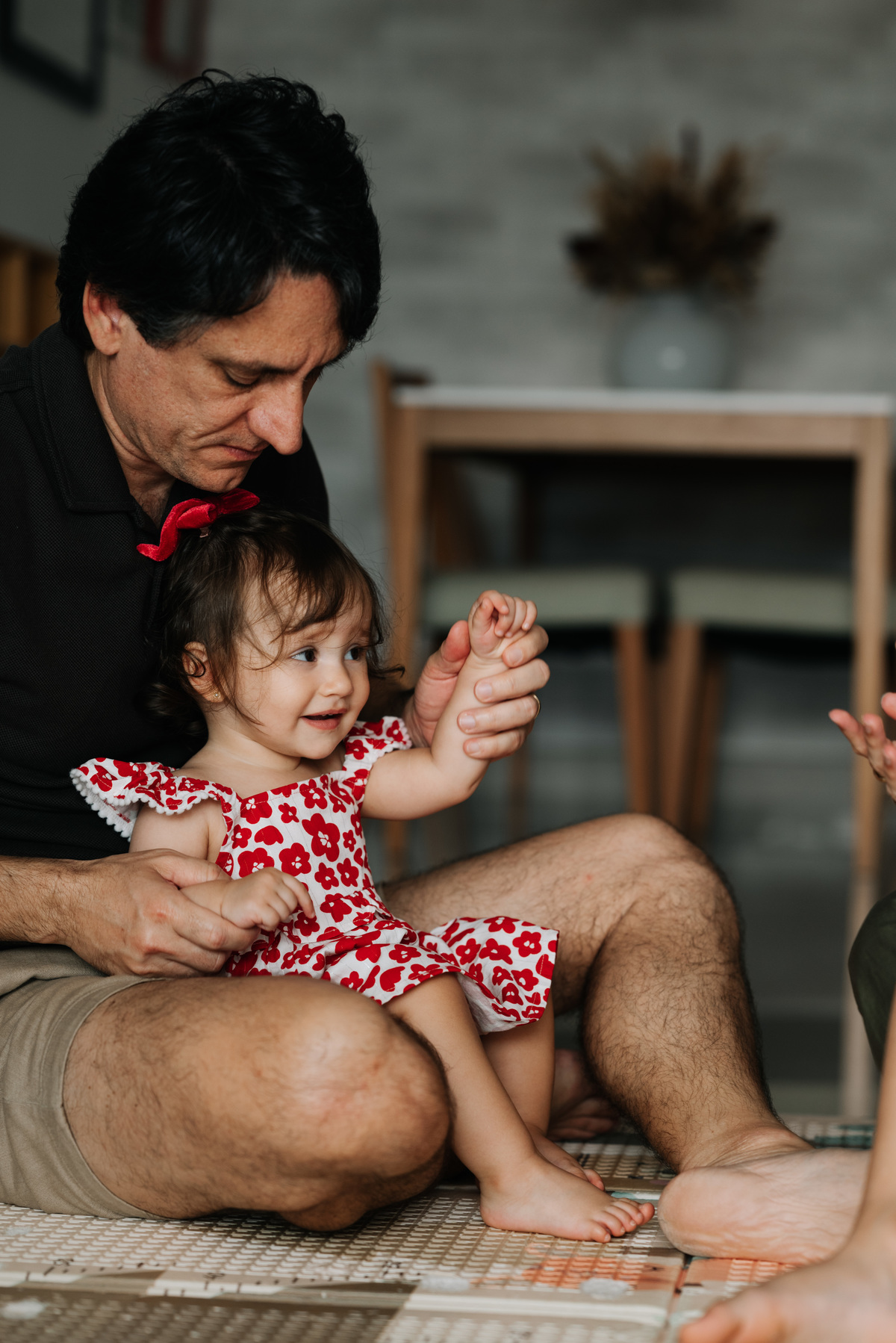 Um ano vivido dentro de casa, entre colo, descobertas e rotina.