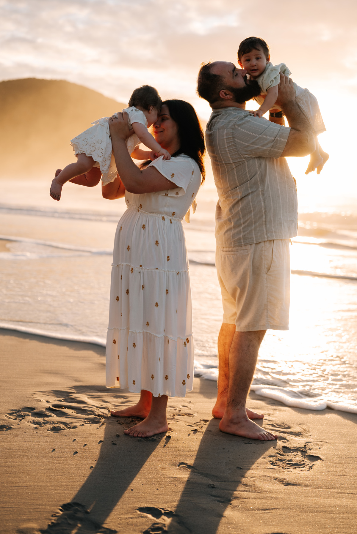 Se você está procurando por ensaio família na praia em Camburi, saiba que o amanhecer pode ser a melhor escolha. Além da beleza do cenário, ele traz tranquilidade e permite que o ensaio aconteça com mais conexão e menos distrações.