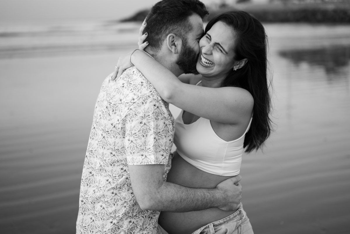 O amanhecer na praia tem uma luz única, suave e dourada, que traz ainda mais beleza para o ensaio gestante. Fotografar nesse momento do dia é viver a tranquilidade do mar, o silêncio da manhã e a emoção de esperar por uma nova vida que está chegando.