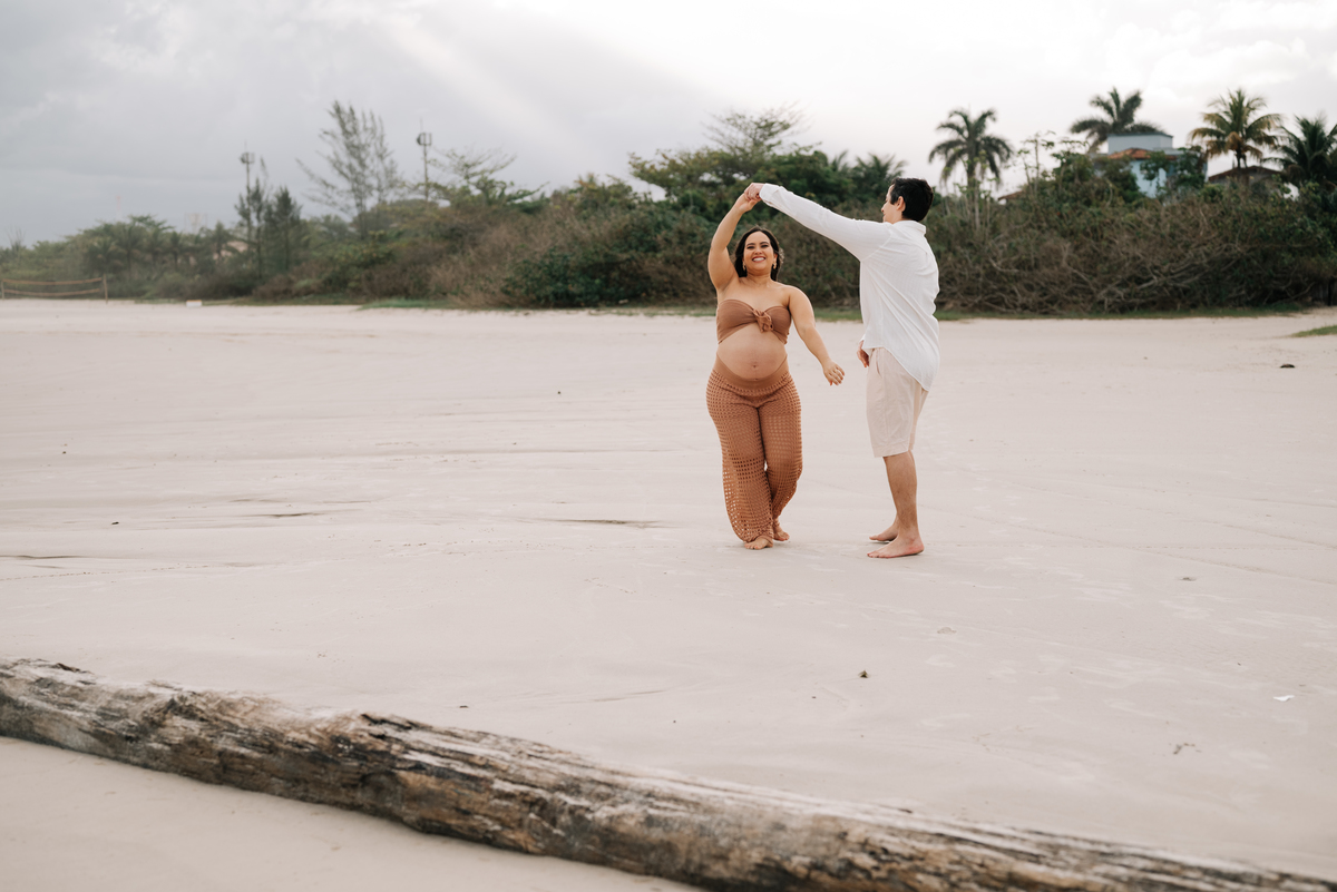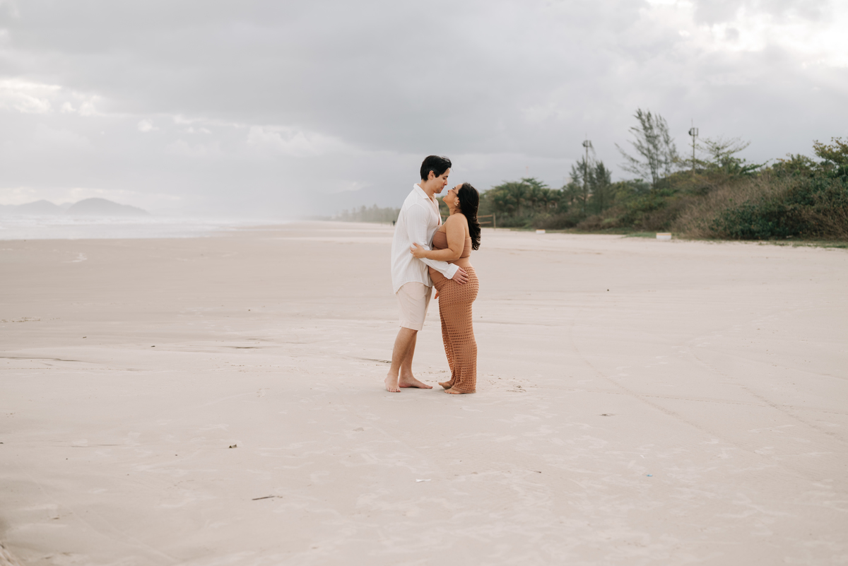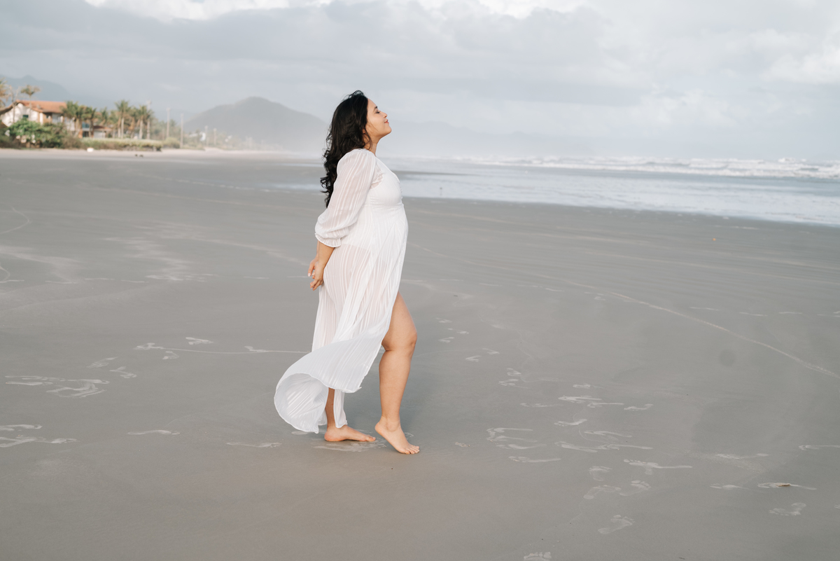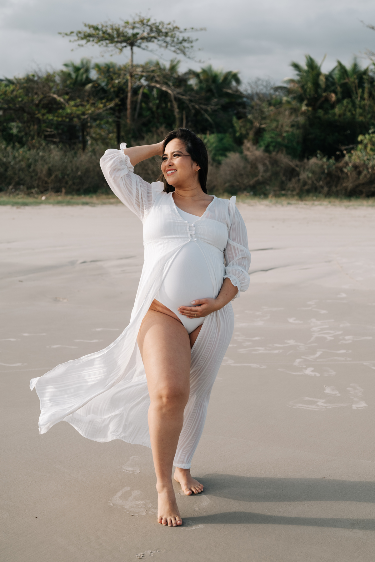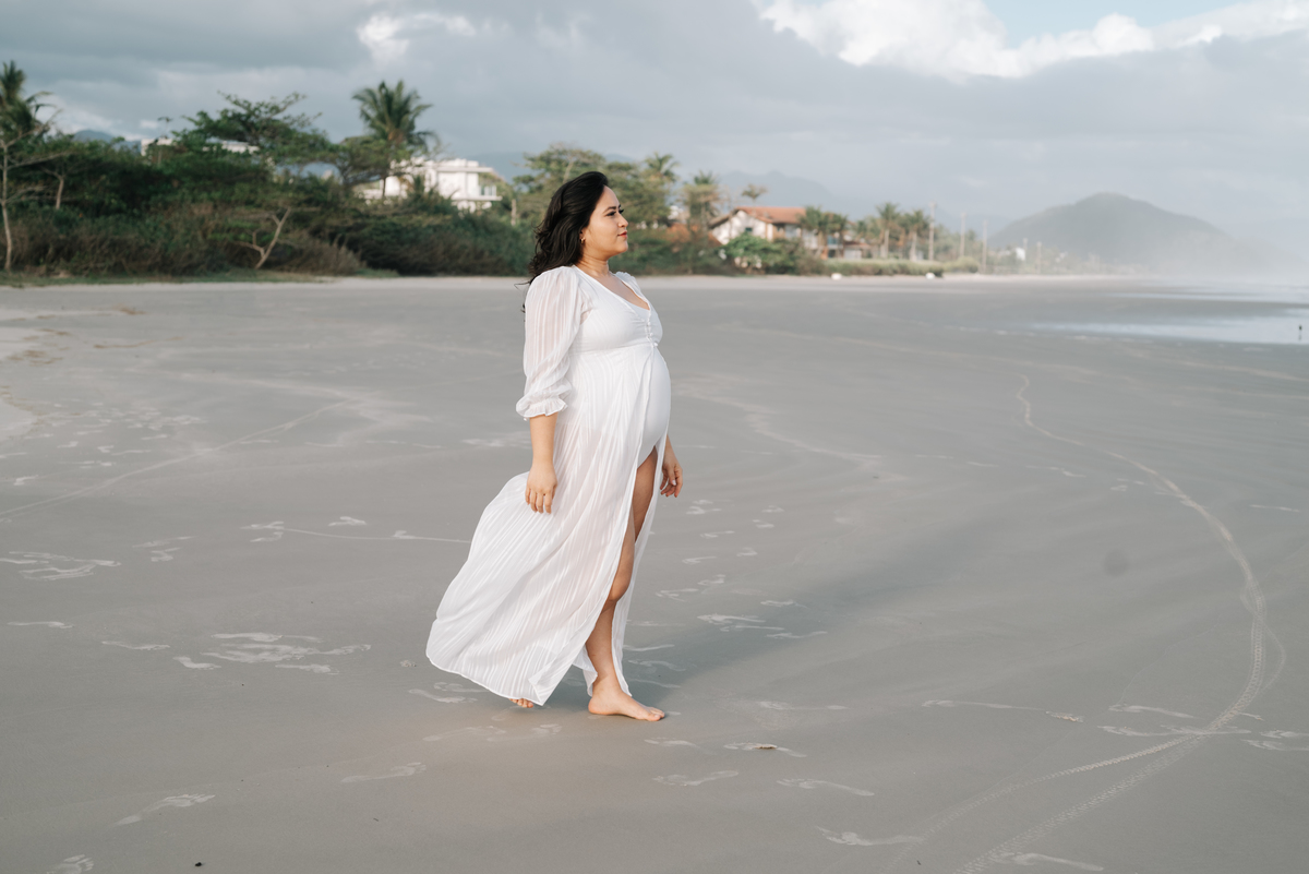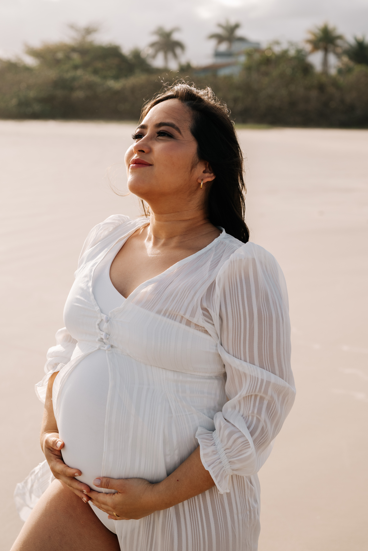 Cada gestação carrega uma história única — e registrar esse momento na praia traz uma leveza especial.