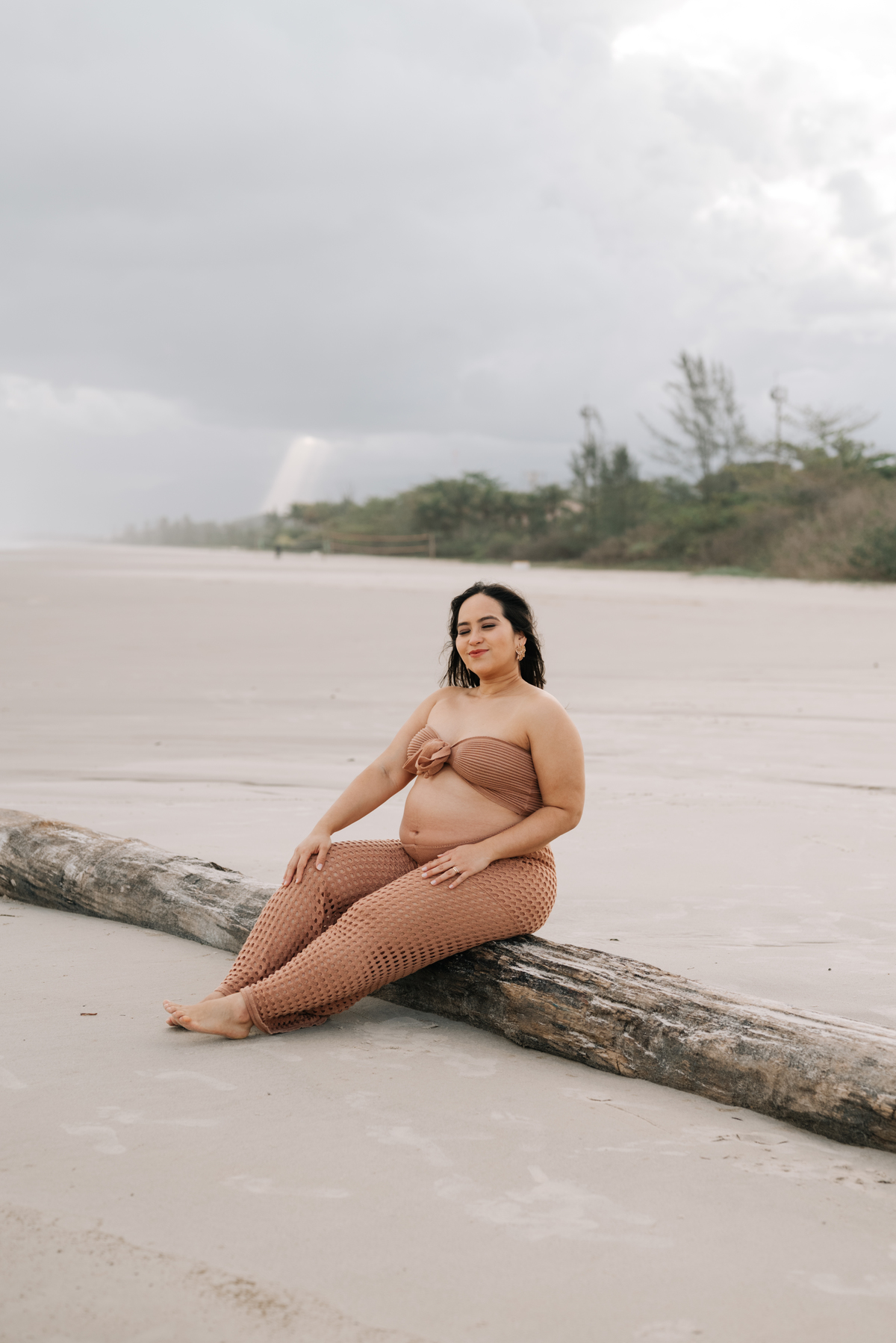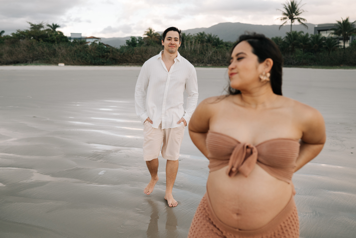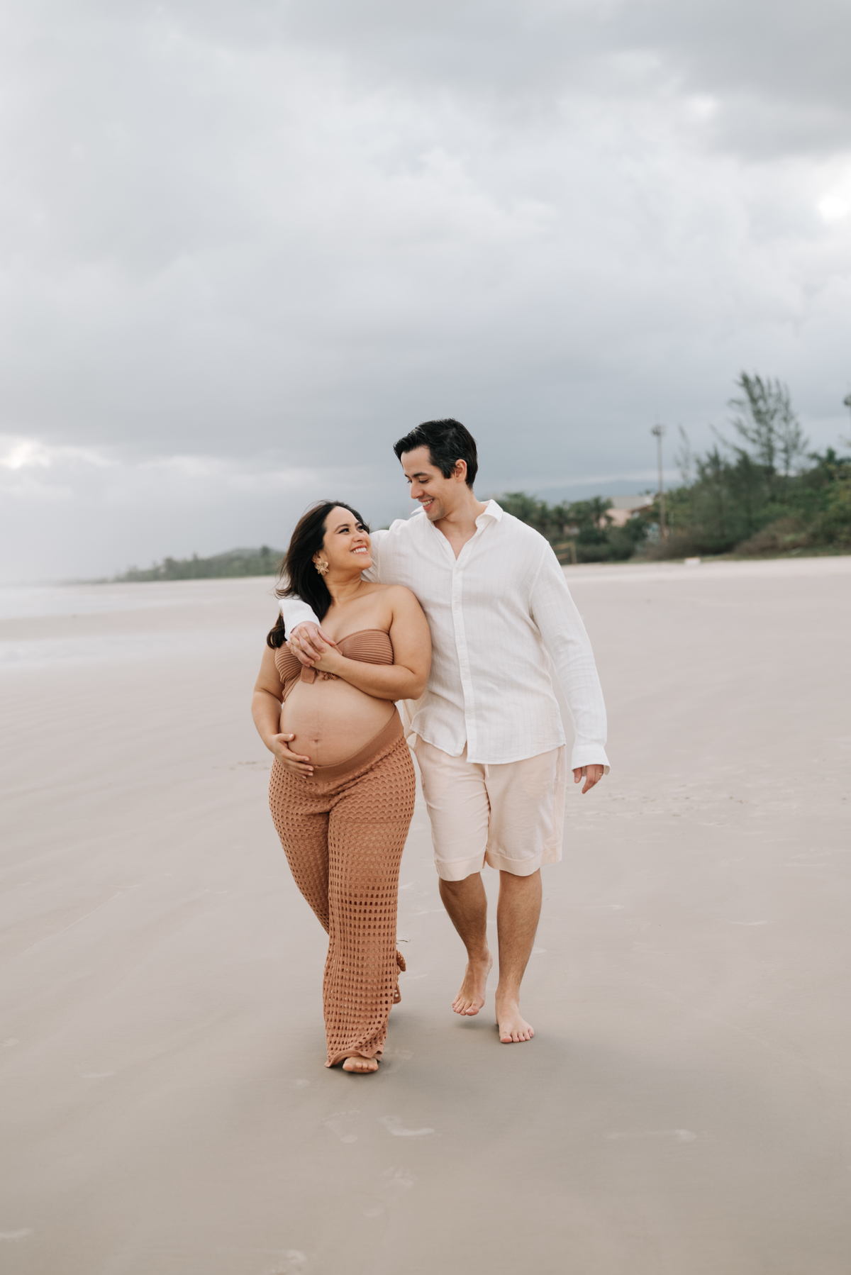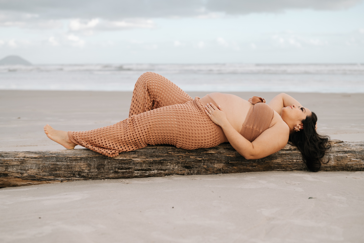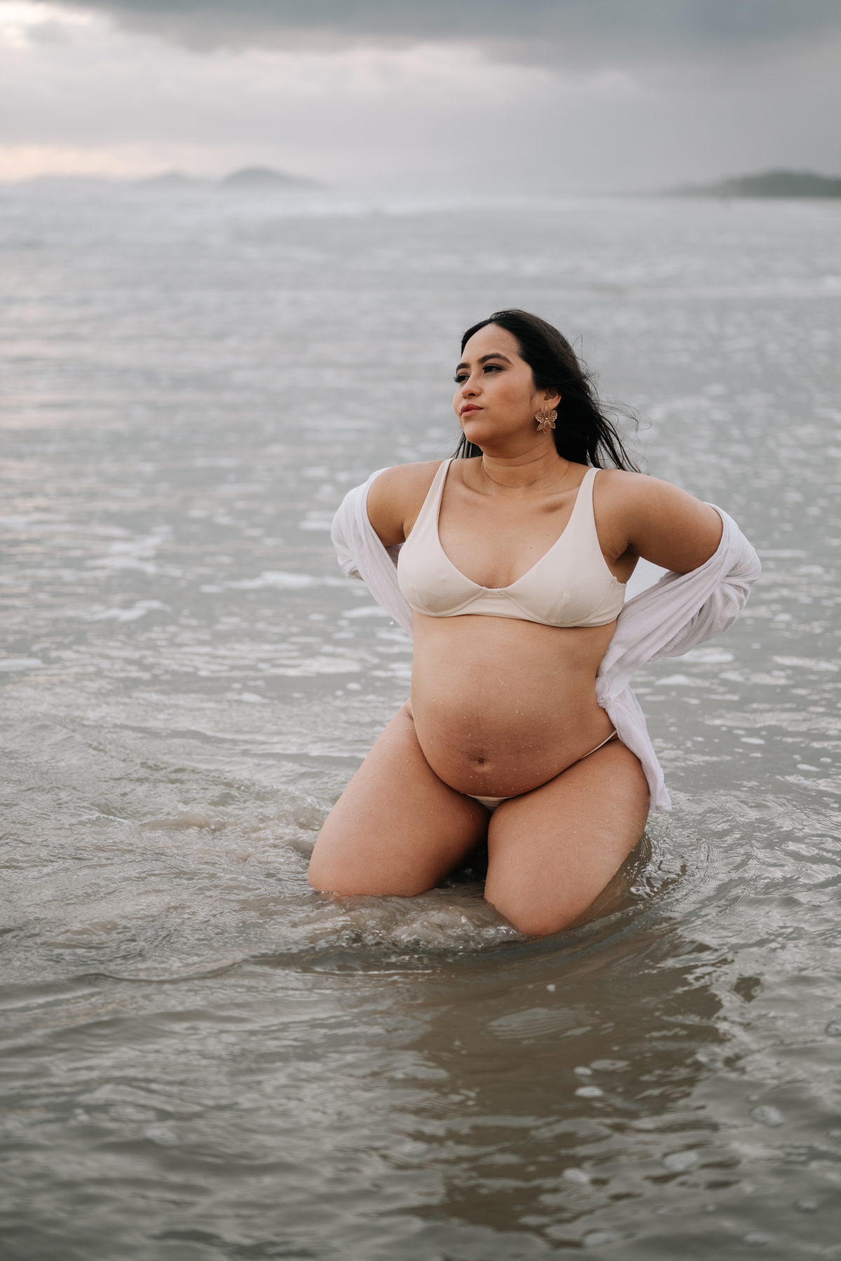 Cada gestação carrega uma história única — e registrar esse momento na praia traz uma leveza especial.