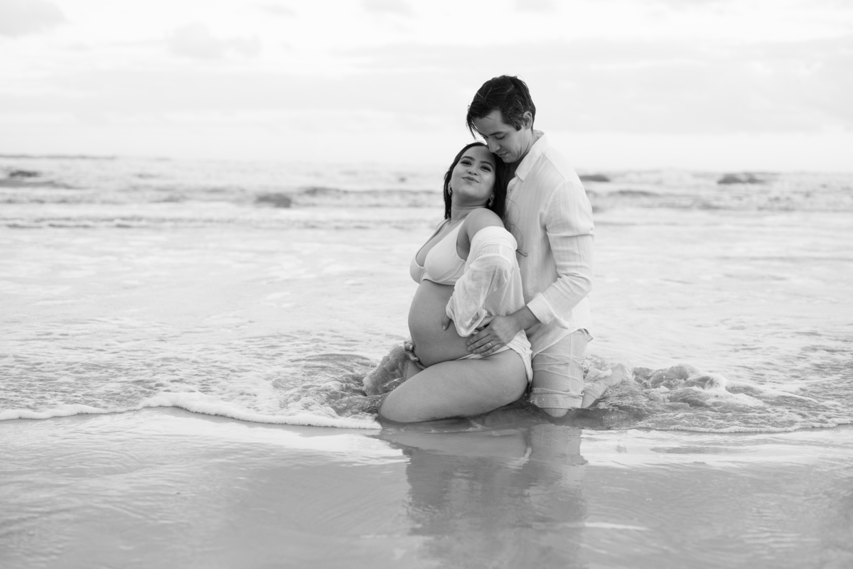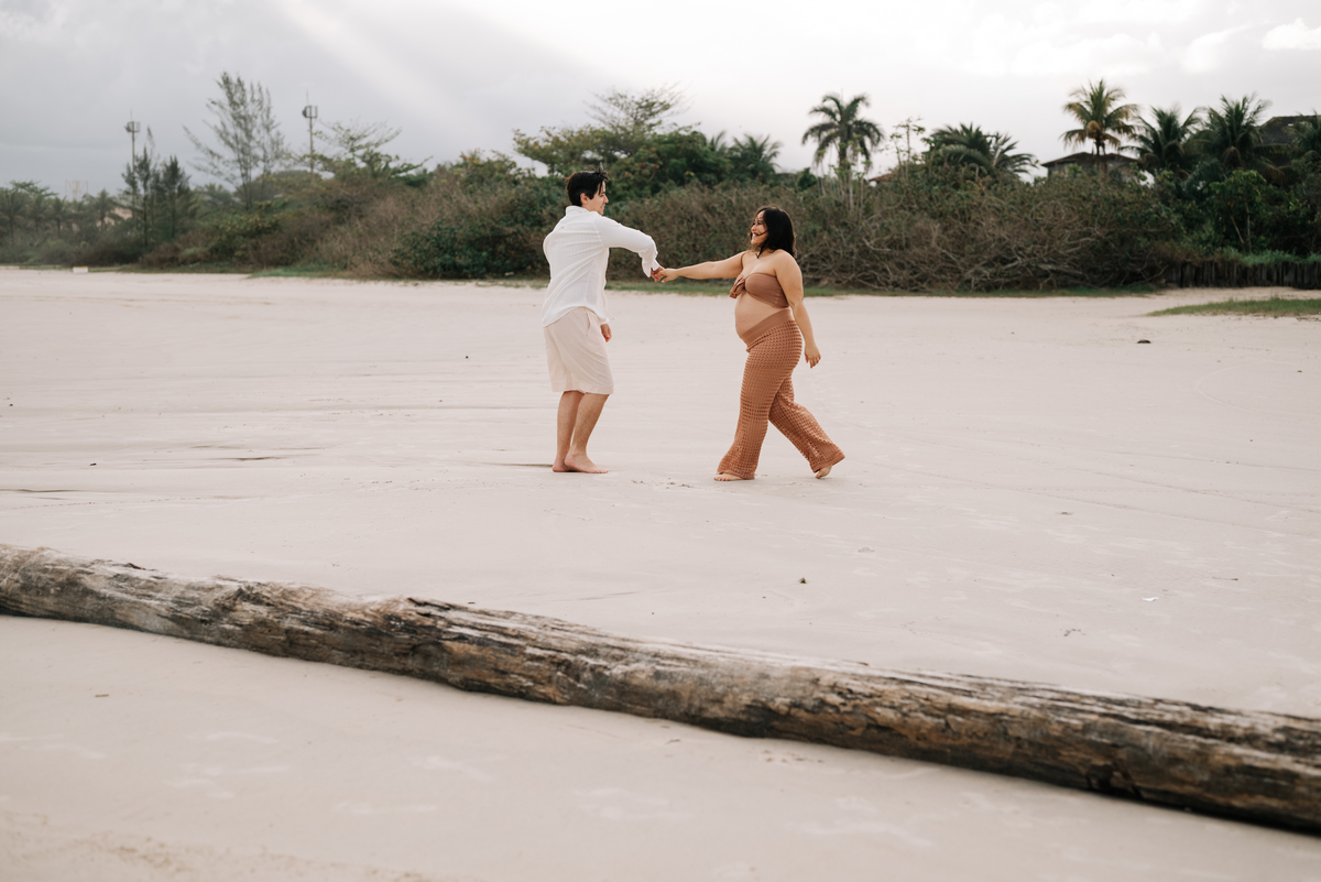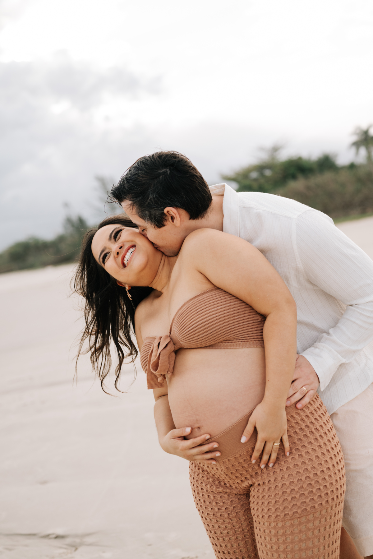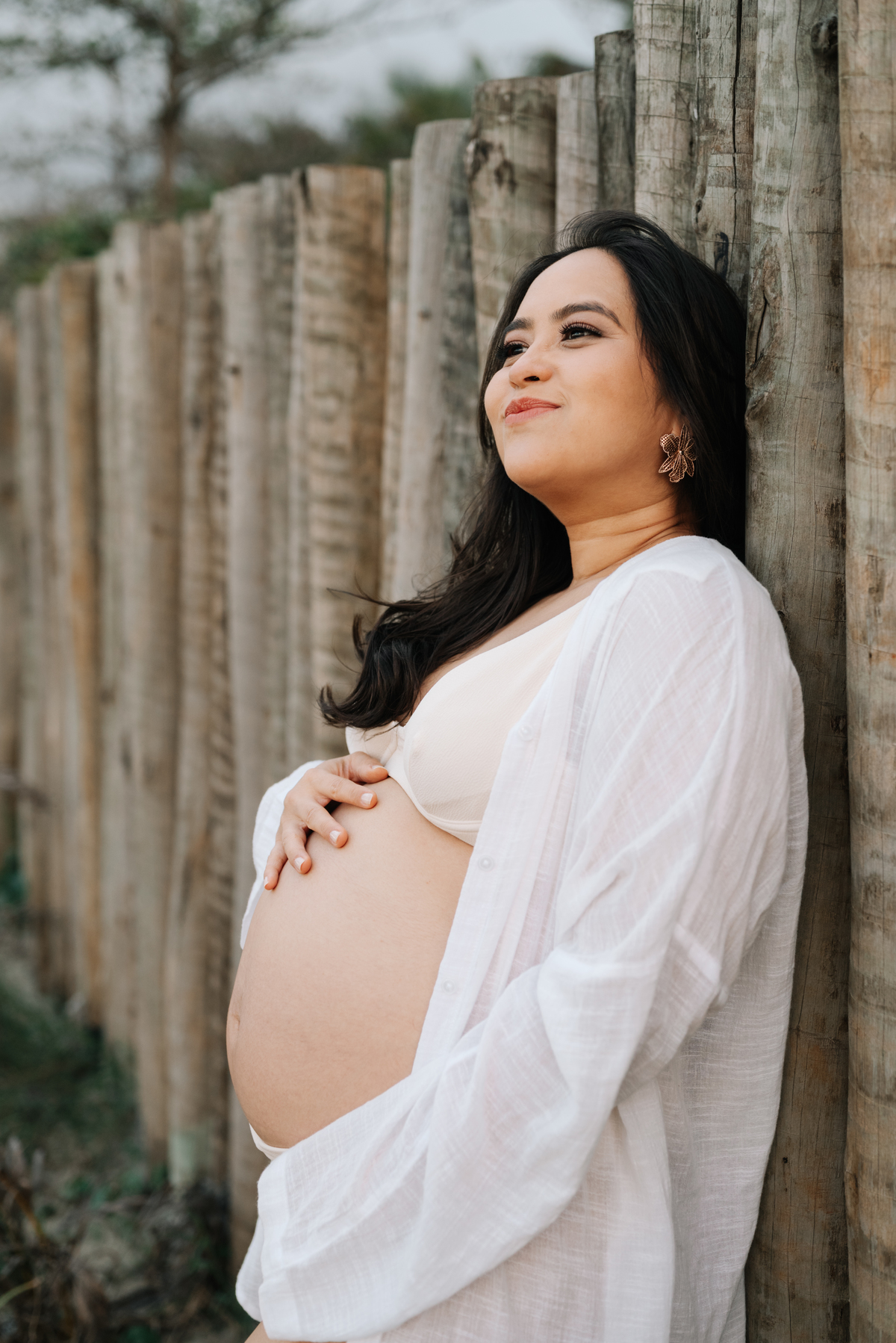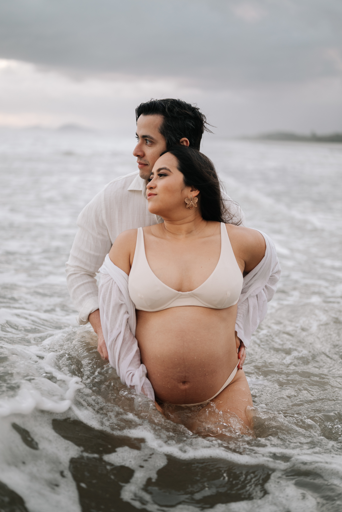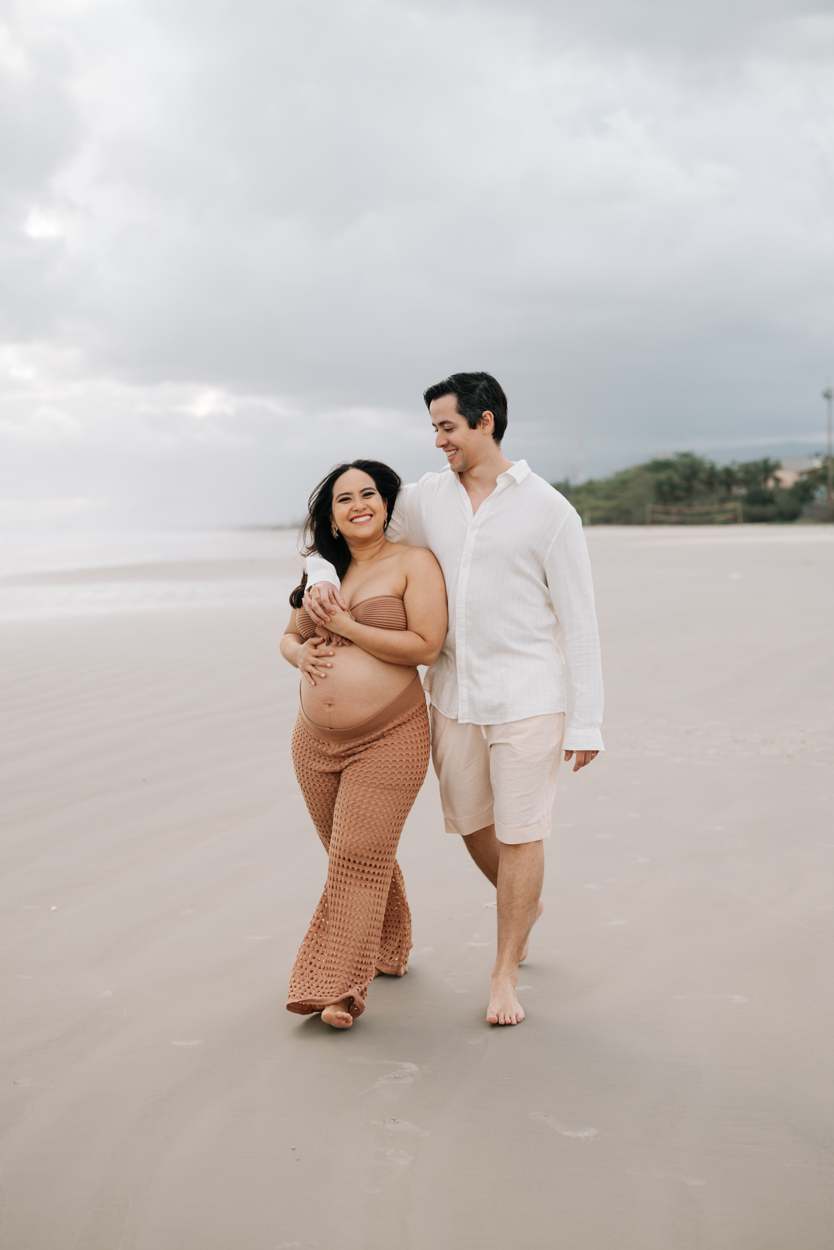 Cada gestação carrega uma história única — e registrar esse momento na praia traz uma leveza especial.