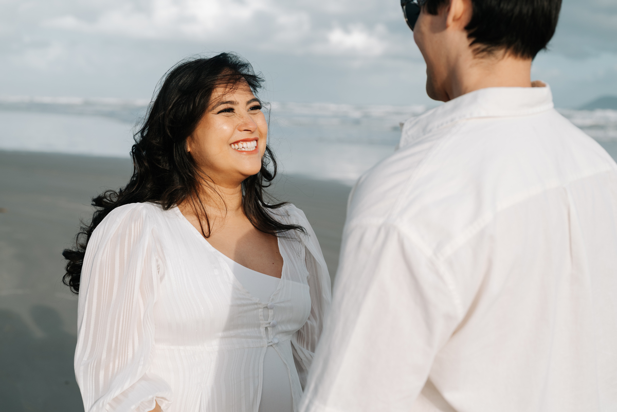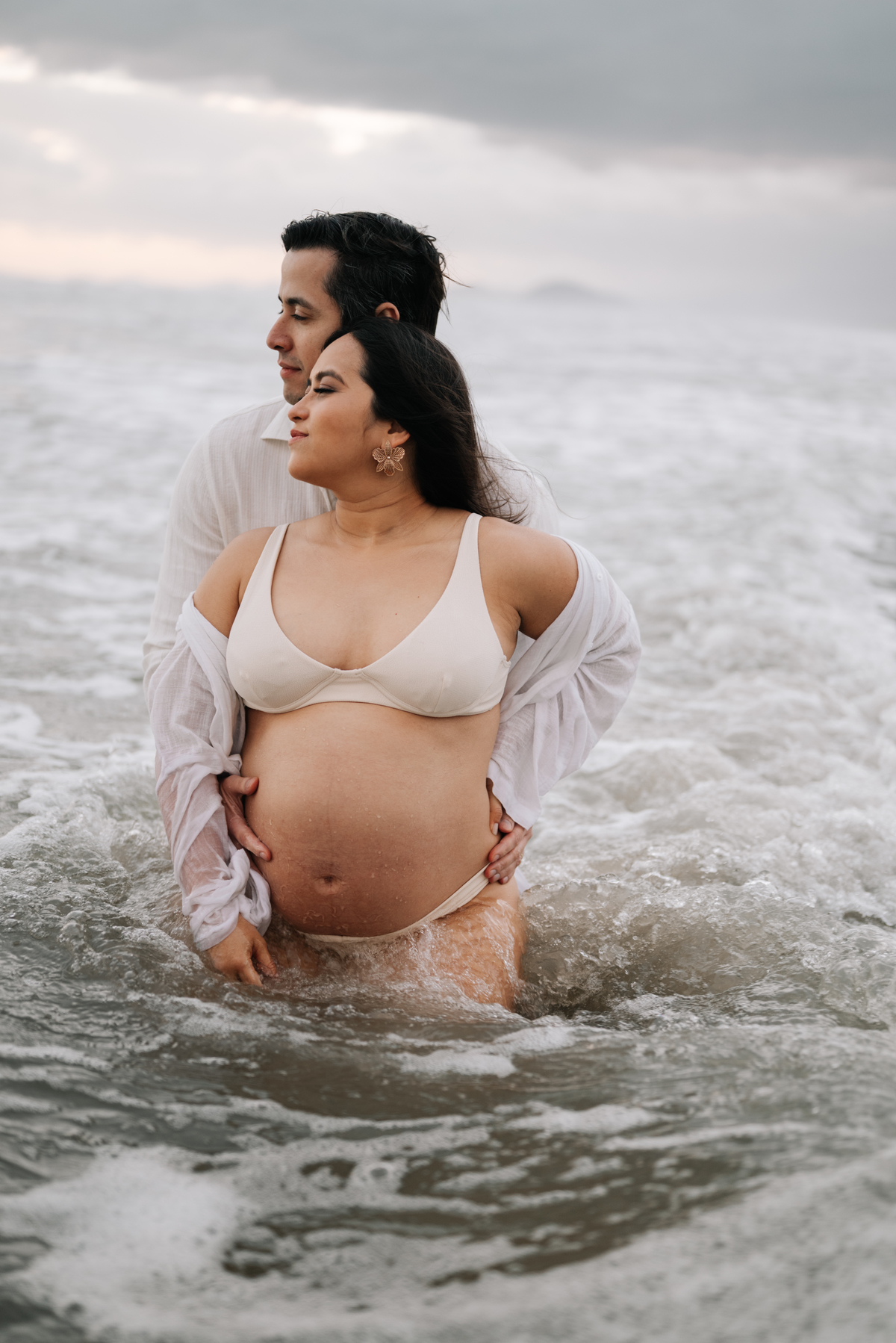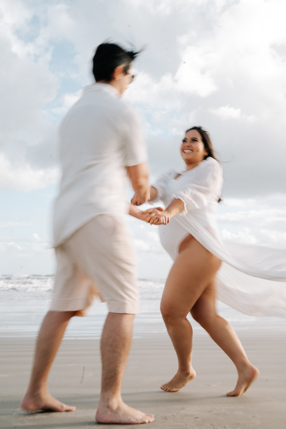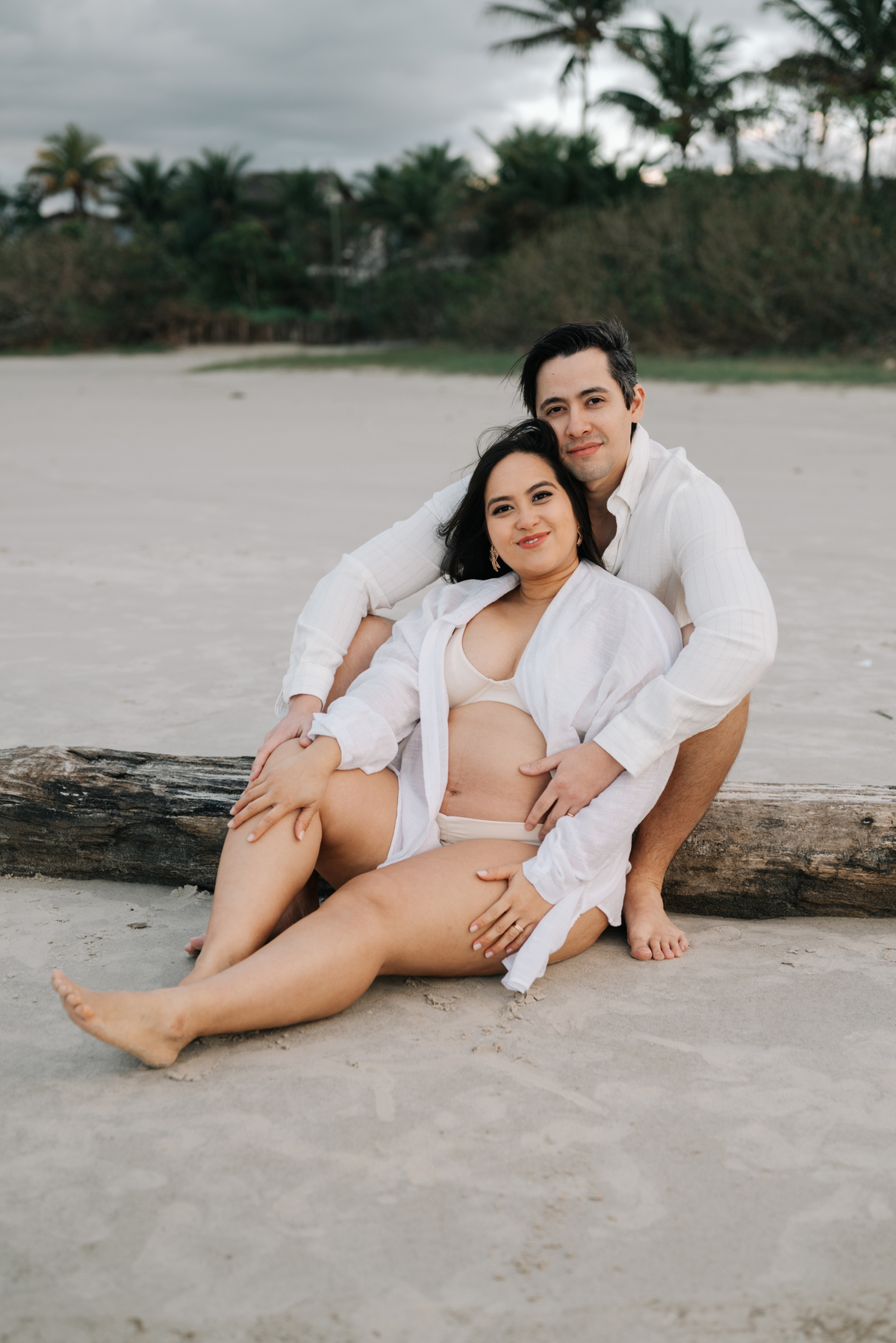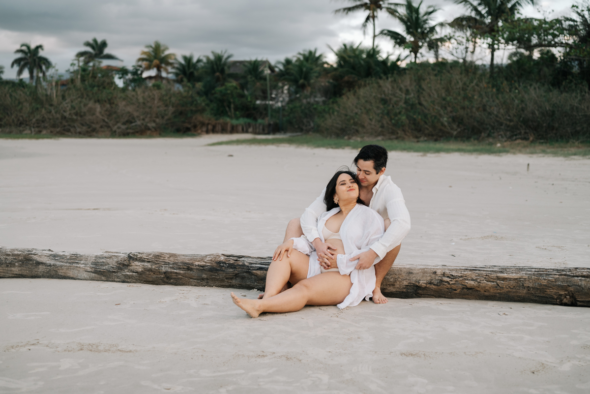 Cada gestação carrega uma história única — e registrar esse momento na praia traz uma leveza especial.