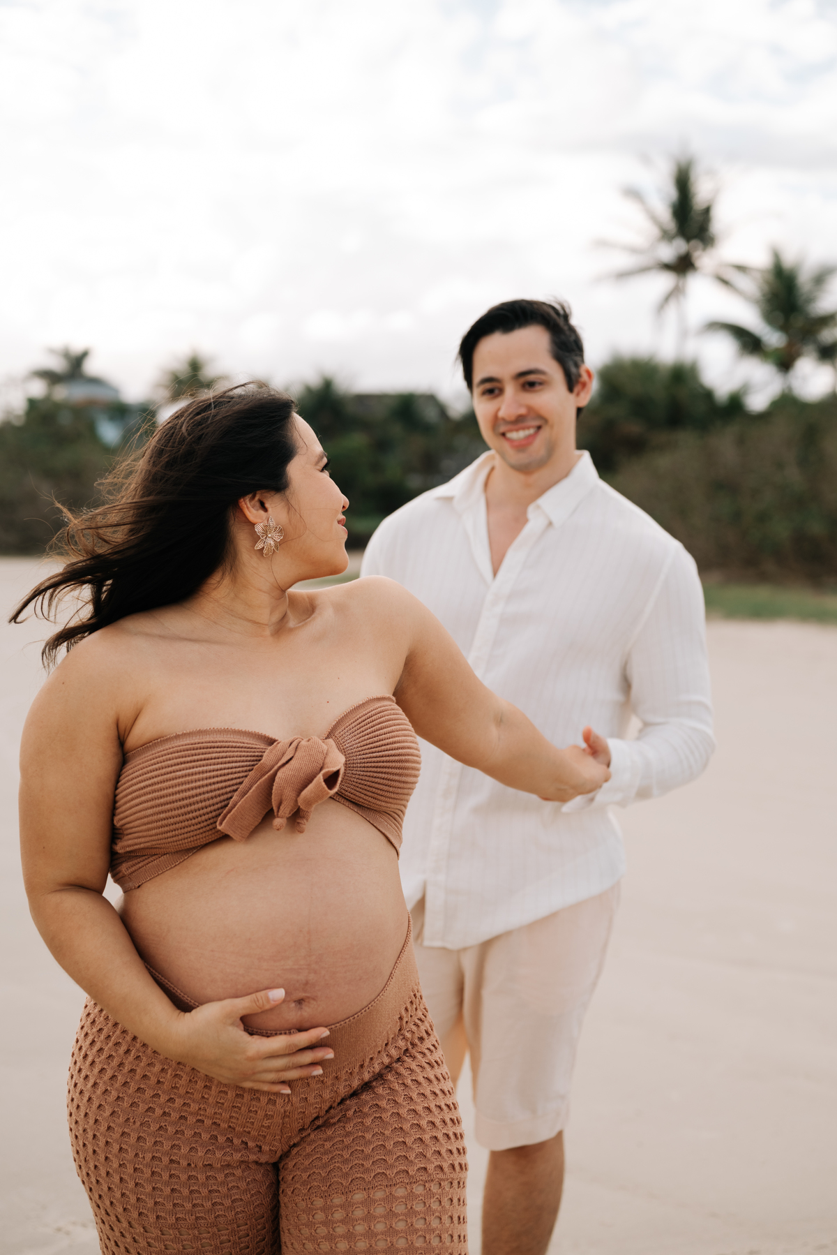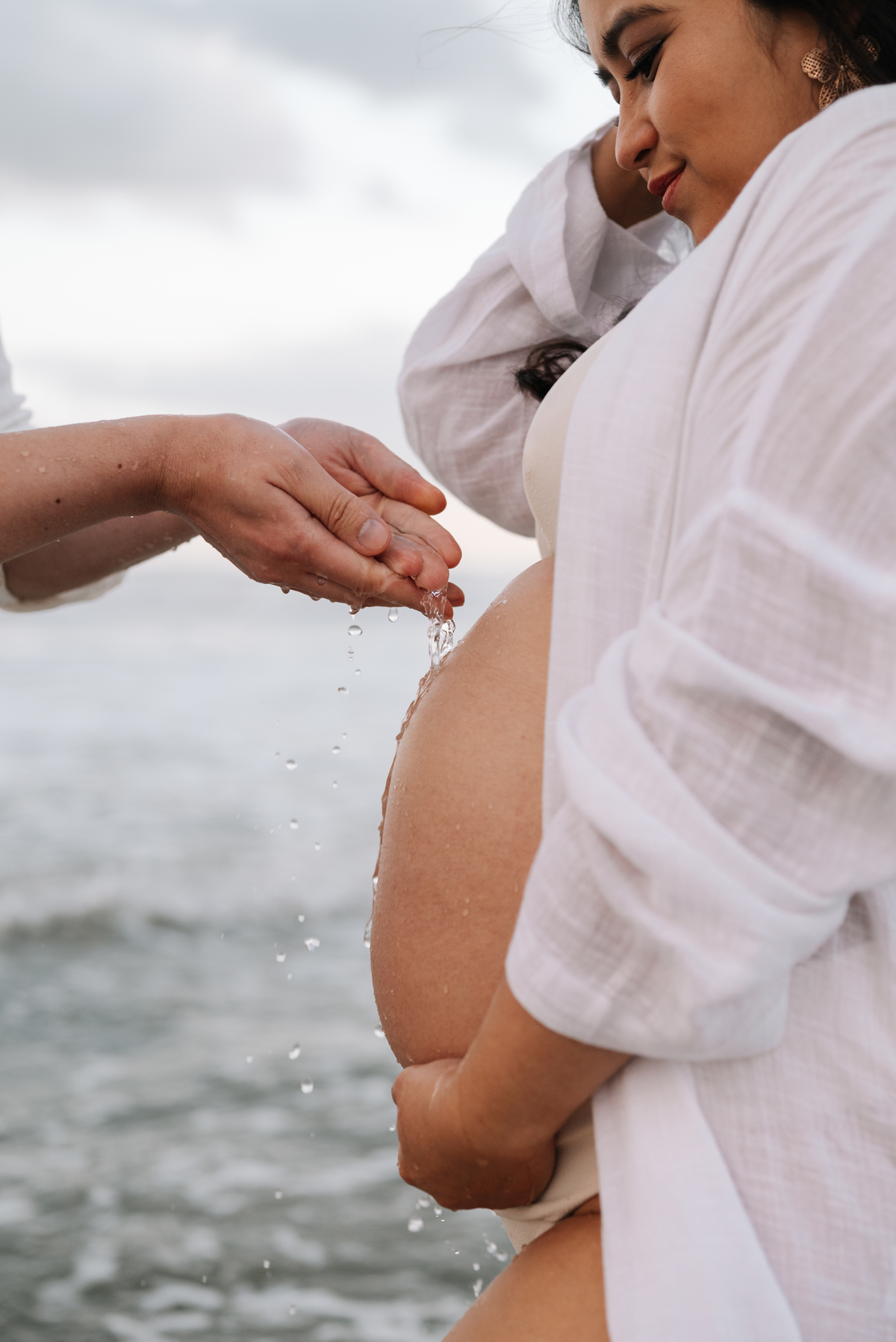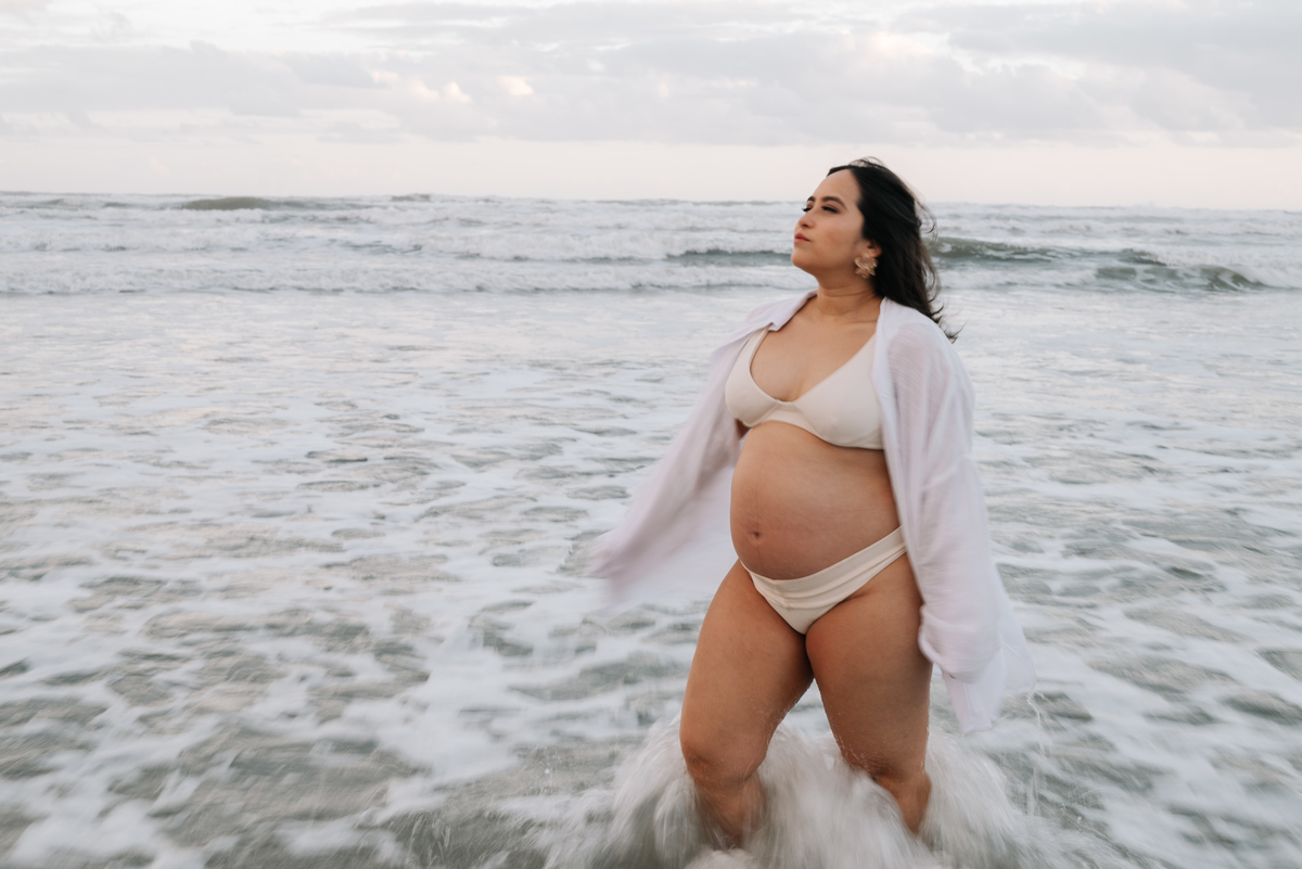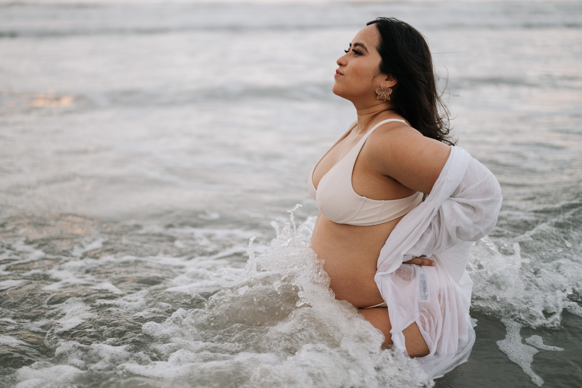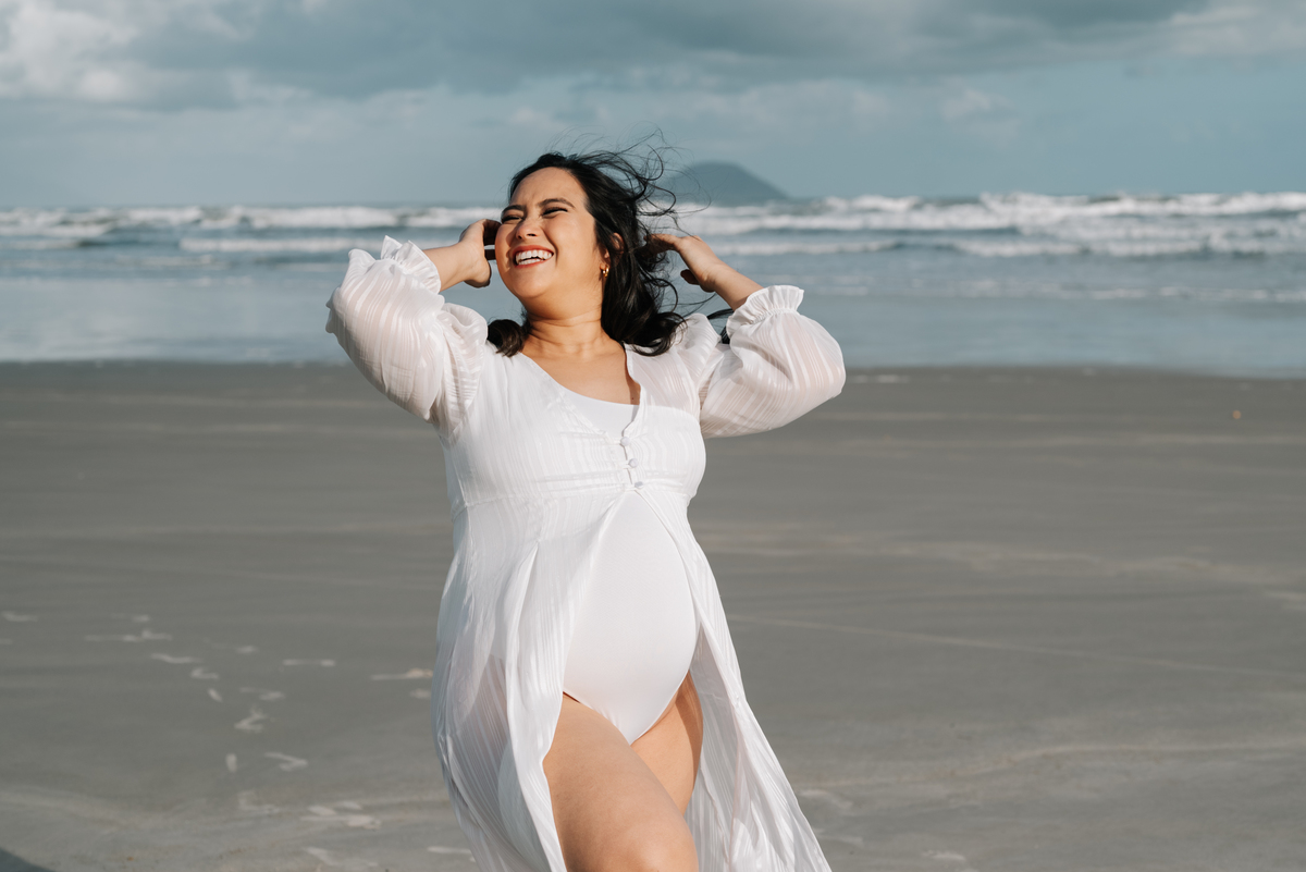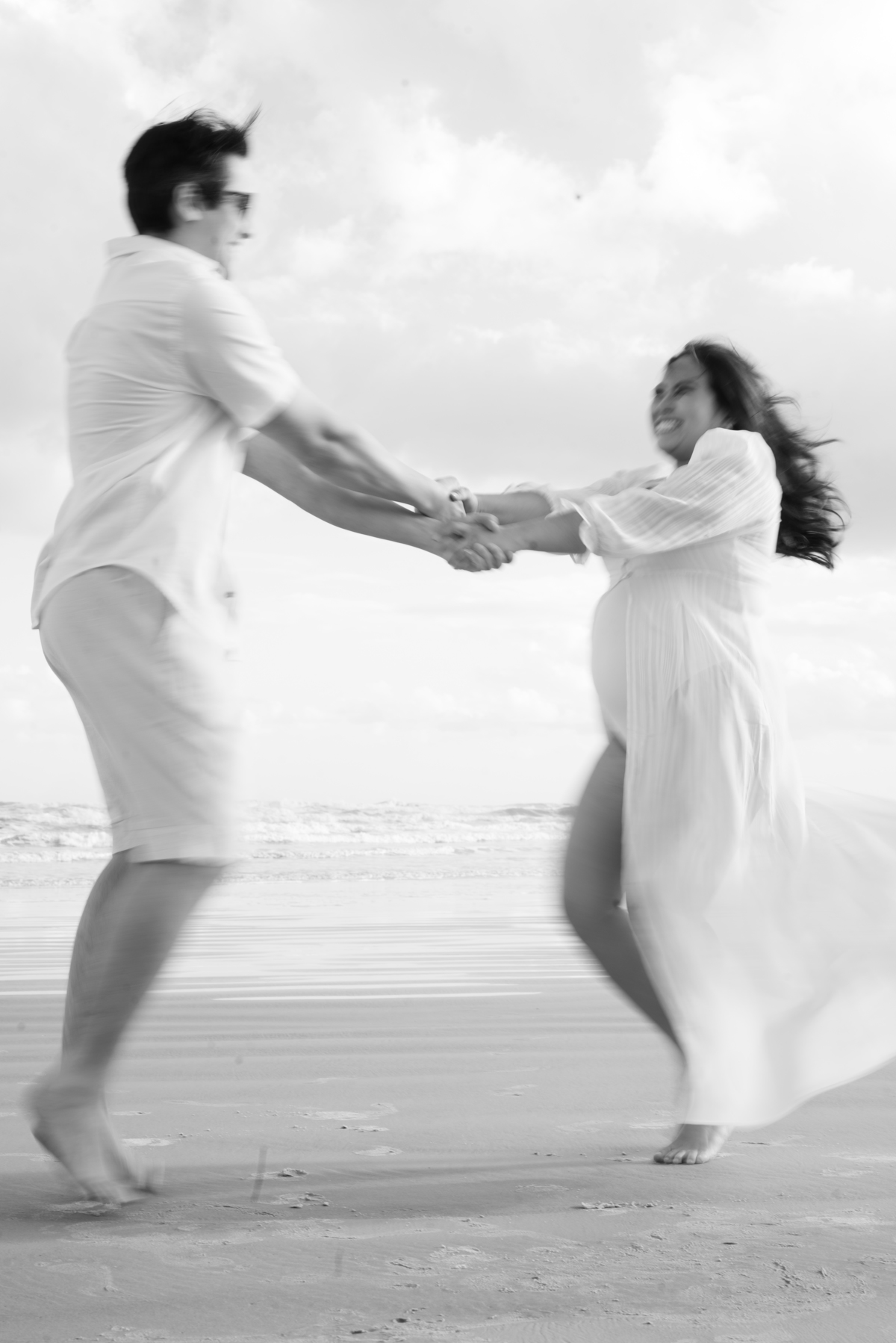 Cada gestação carrega uma história única — e registrar esse momento na praia traz uma leveza especial.