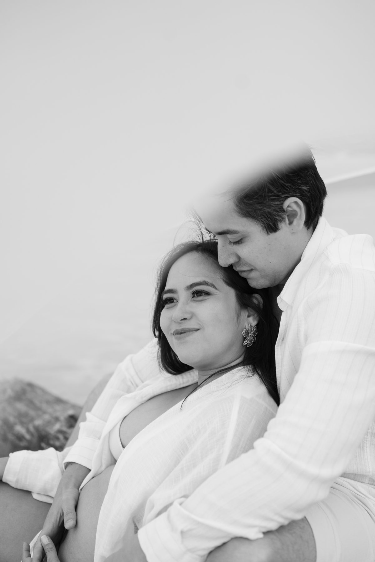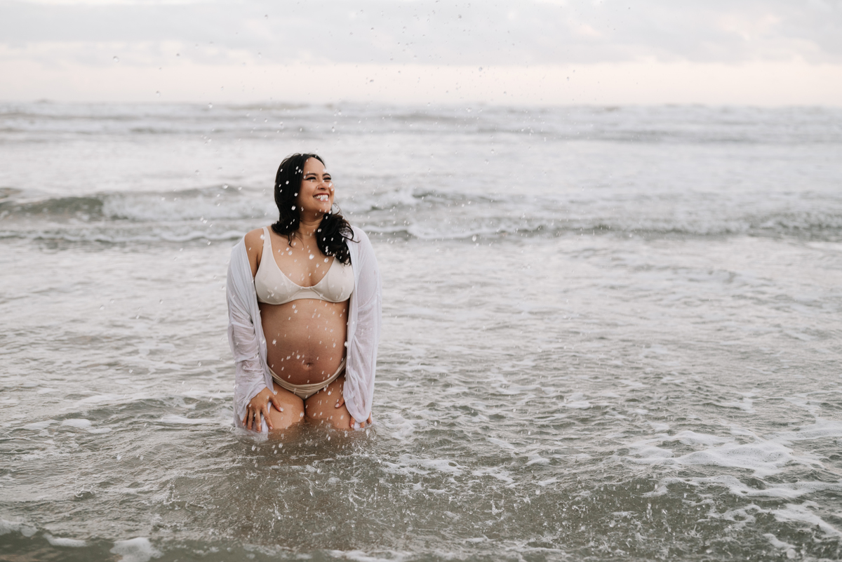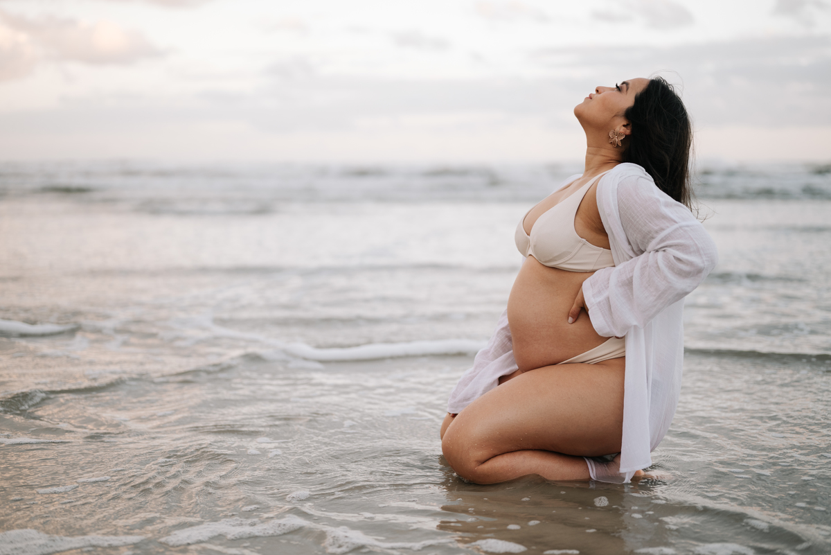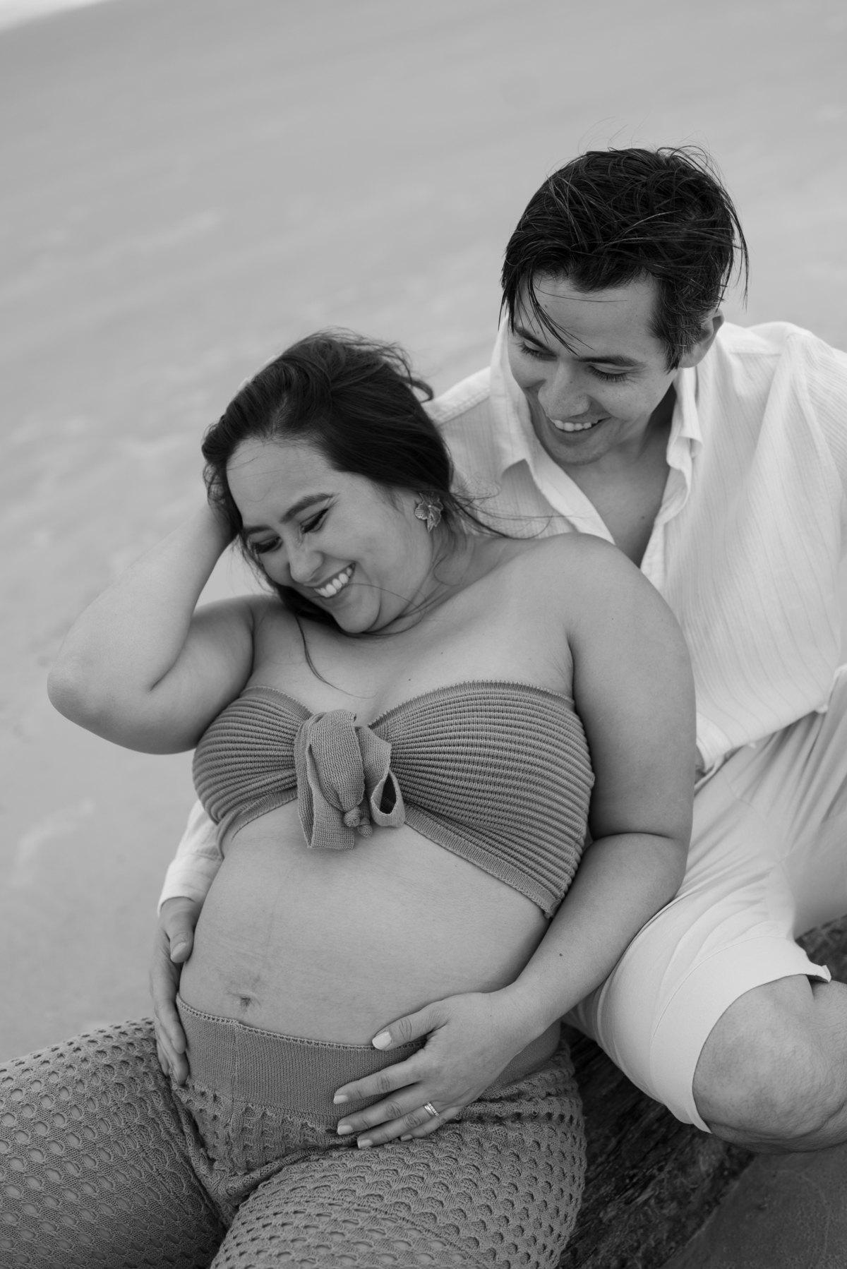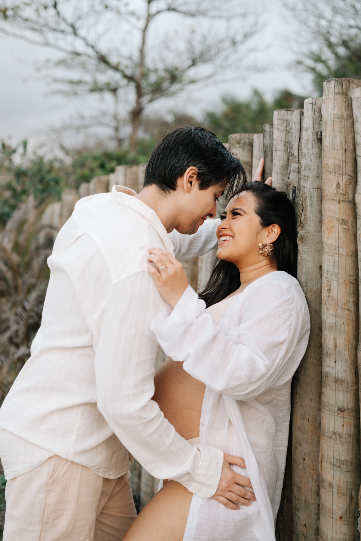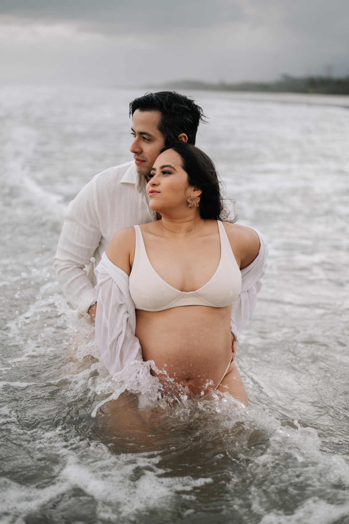 Cada gestação carrega uma história única — e registrar esse momento na praia traz uma leveza especial.