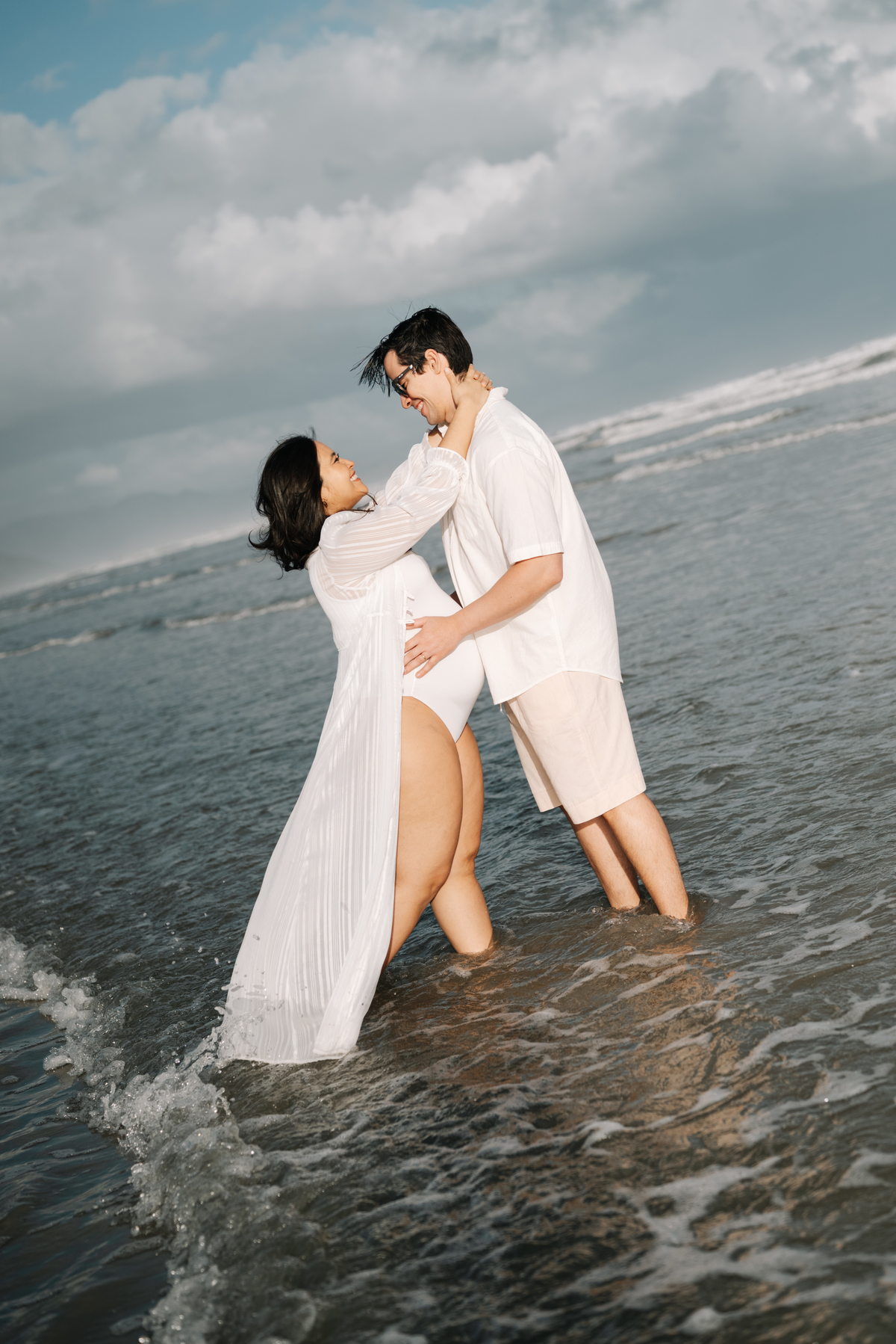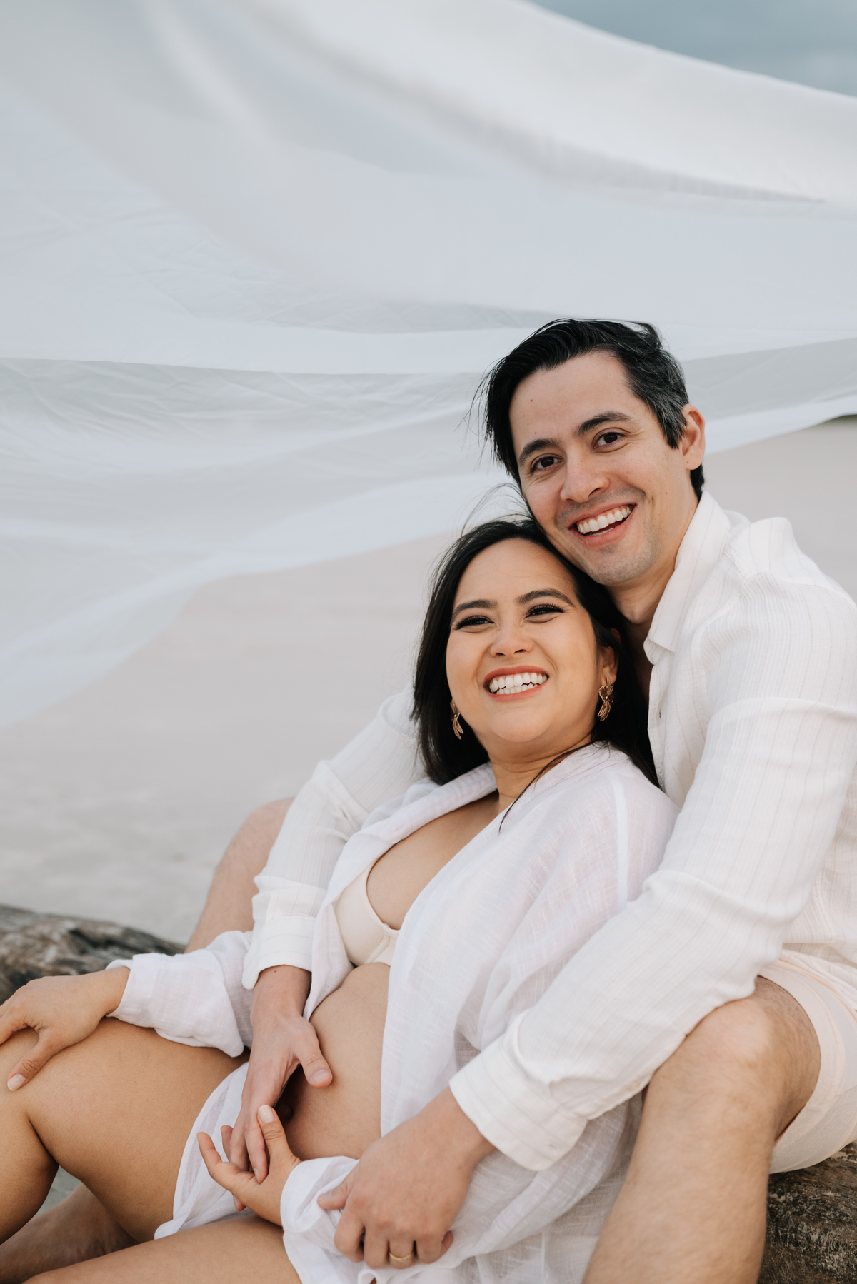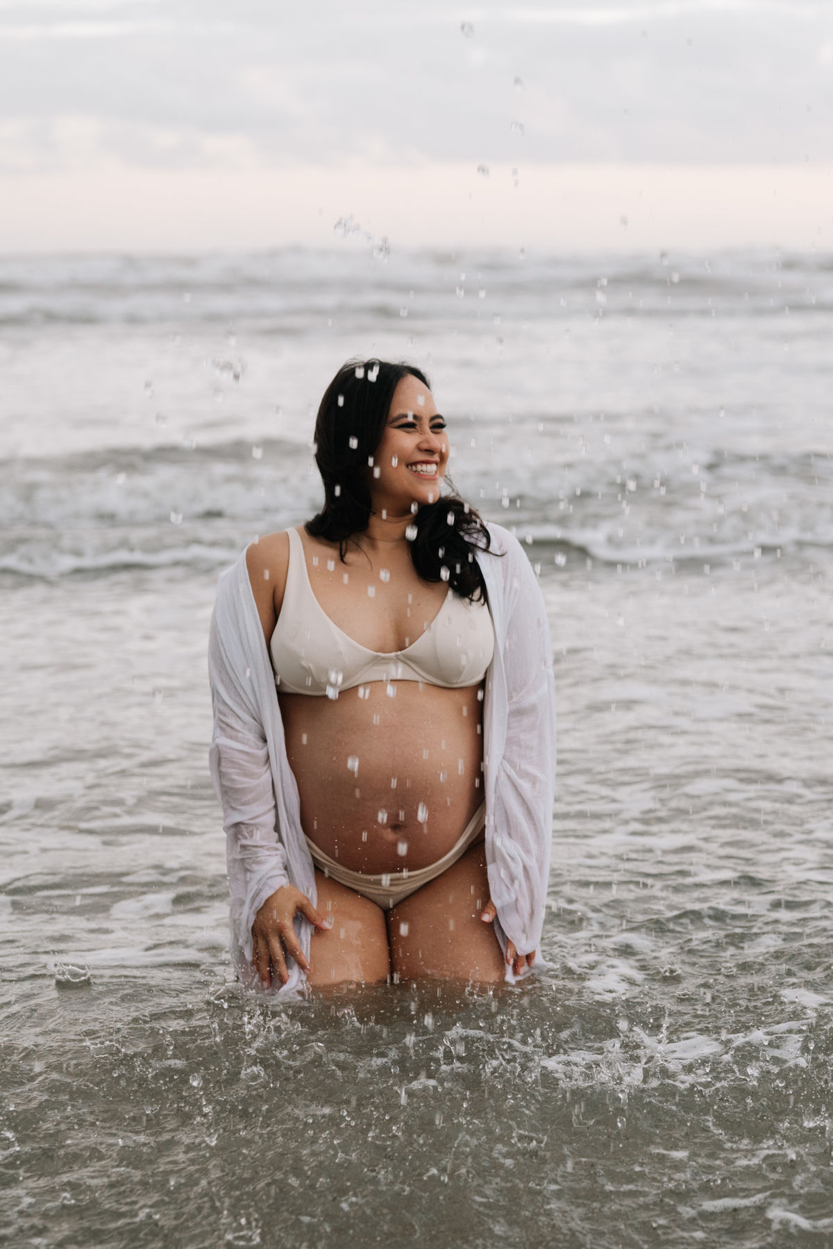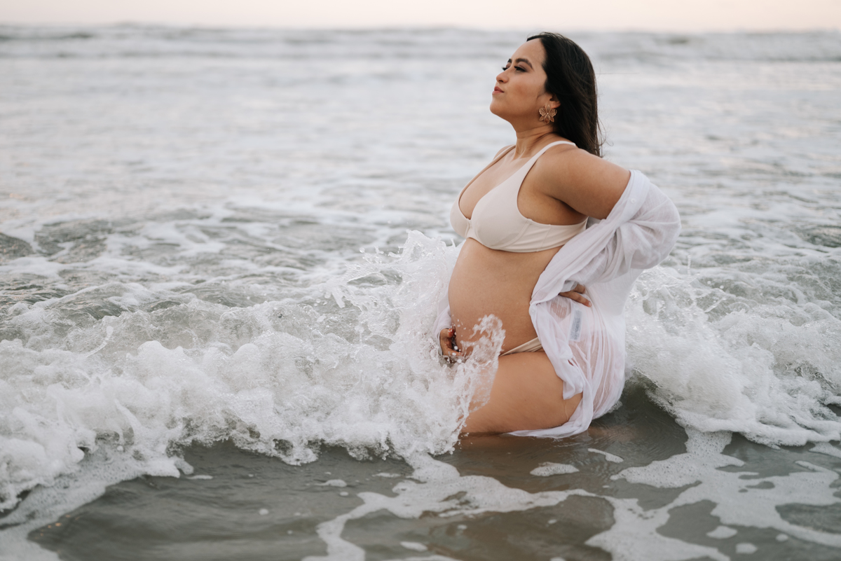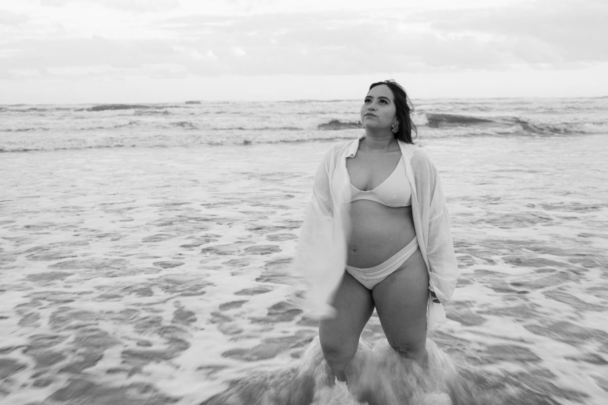 Cada gestação carrega uma história única — e registrar esse momento na praia traz uma leveza especial.