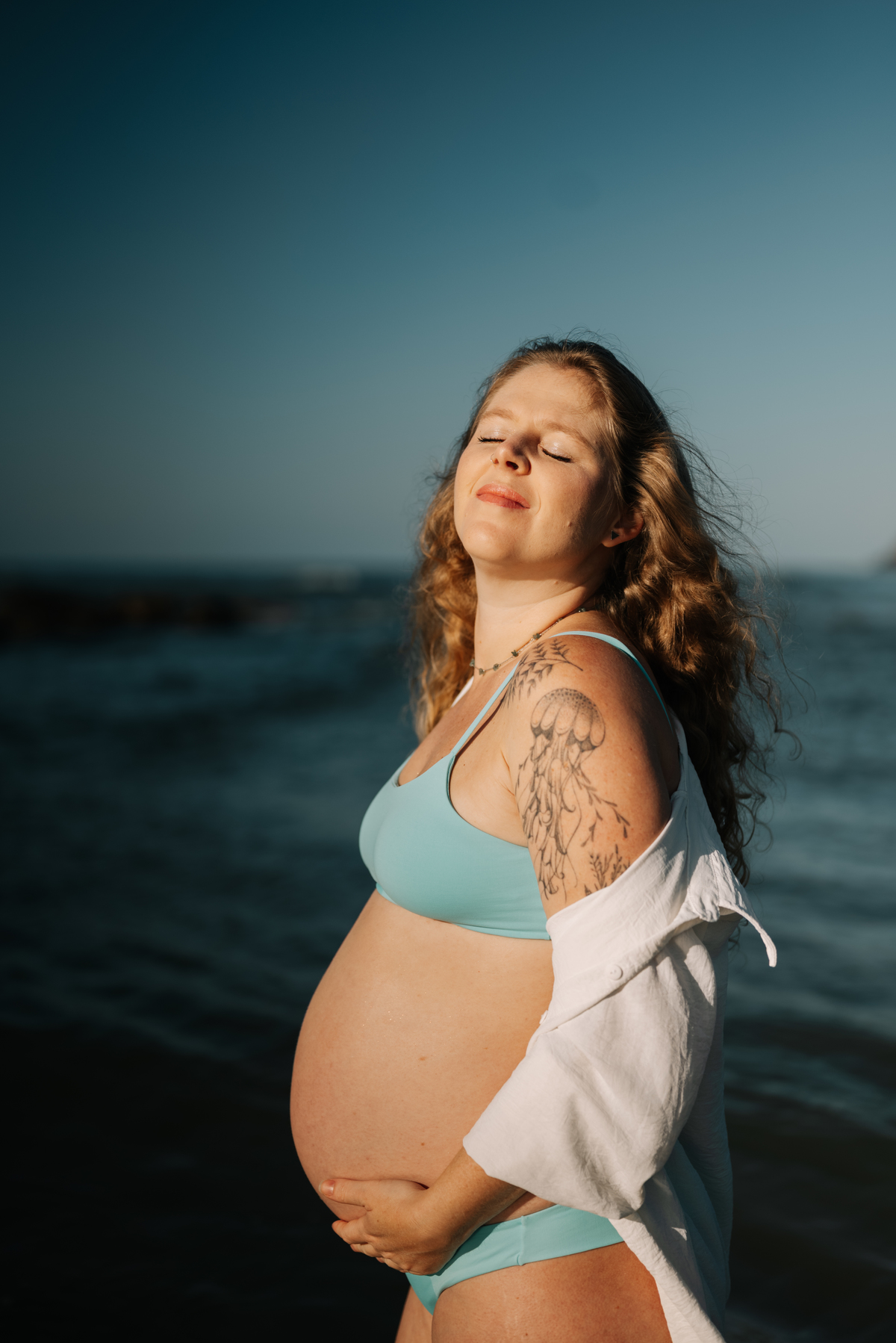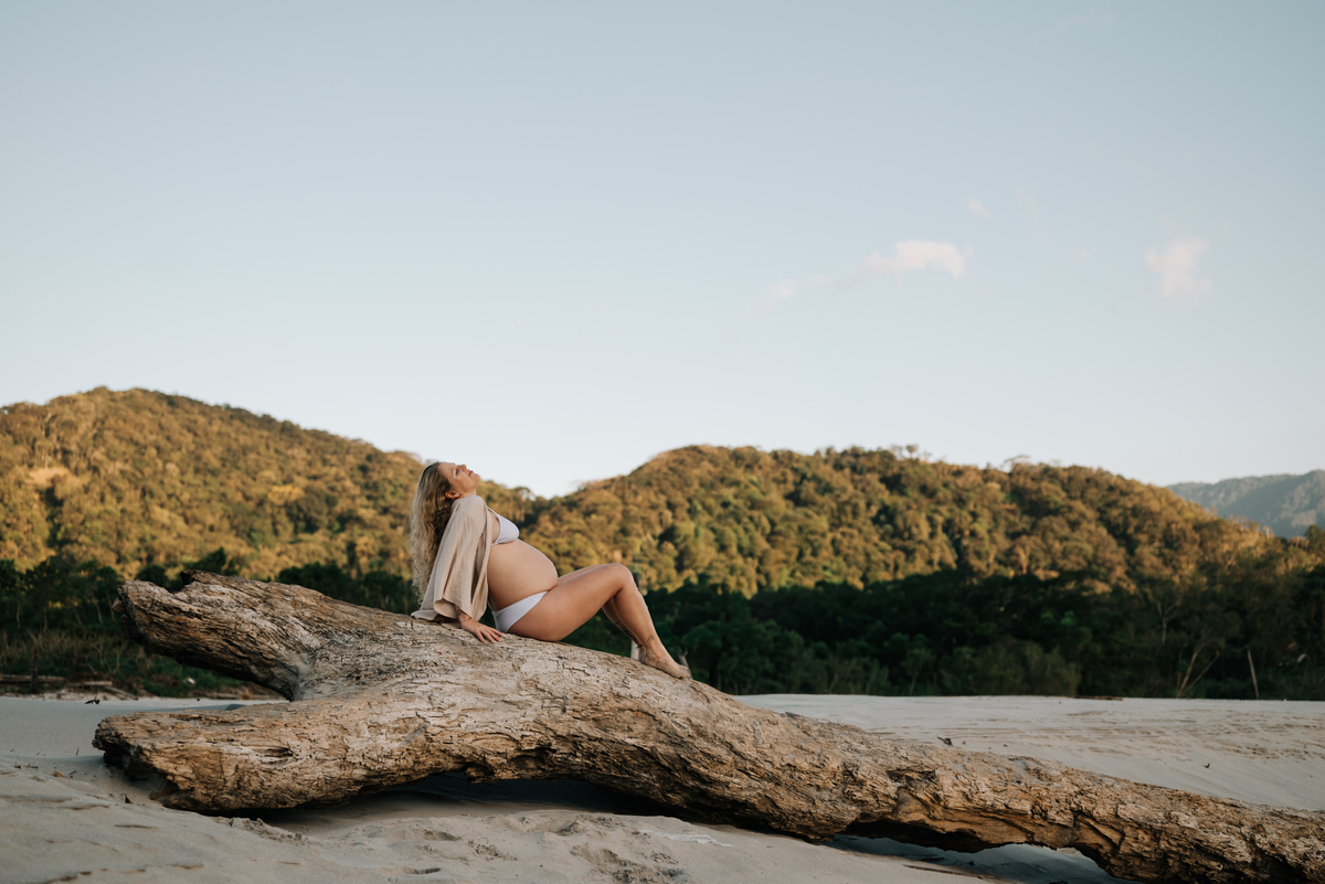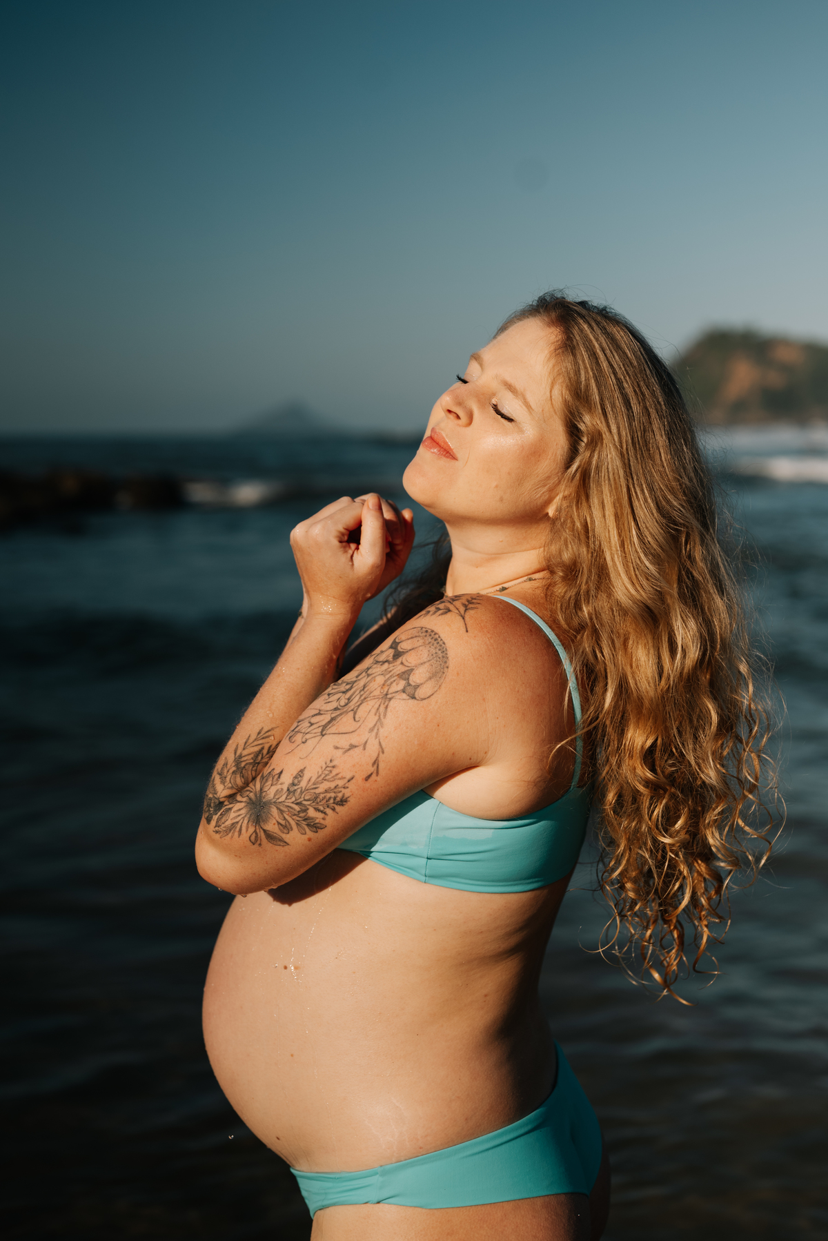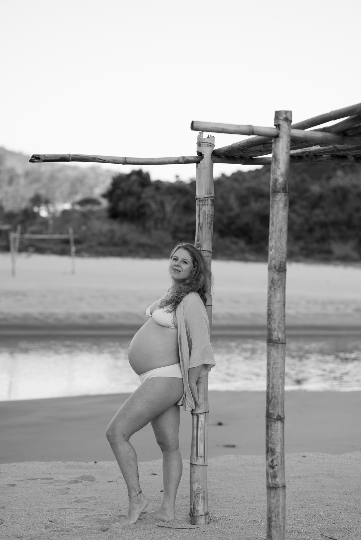 Essas foram as primeiras palavras da Nathalia quando conversamos sobre o **ensaio gestante em Camburi**, no litoral norte de São Paulo.