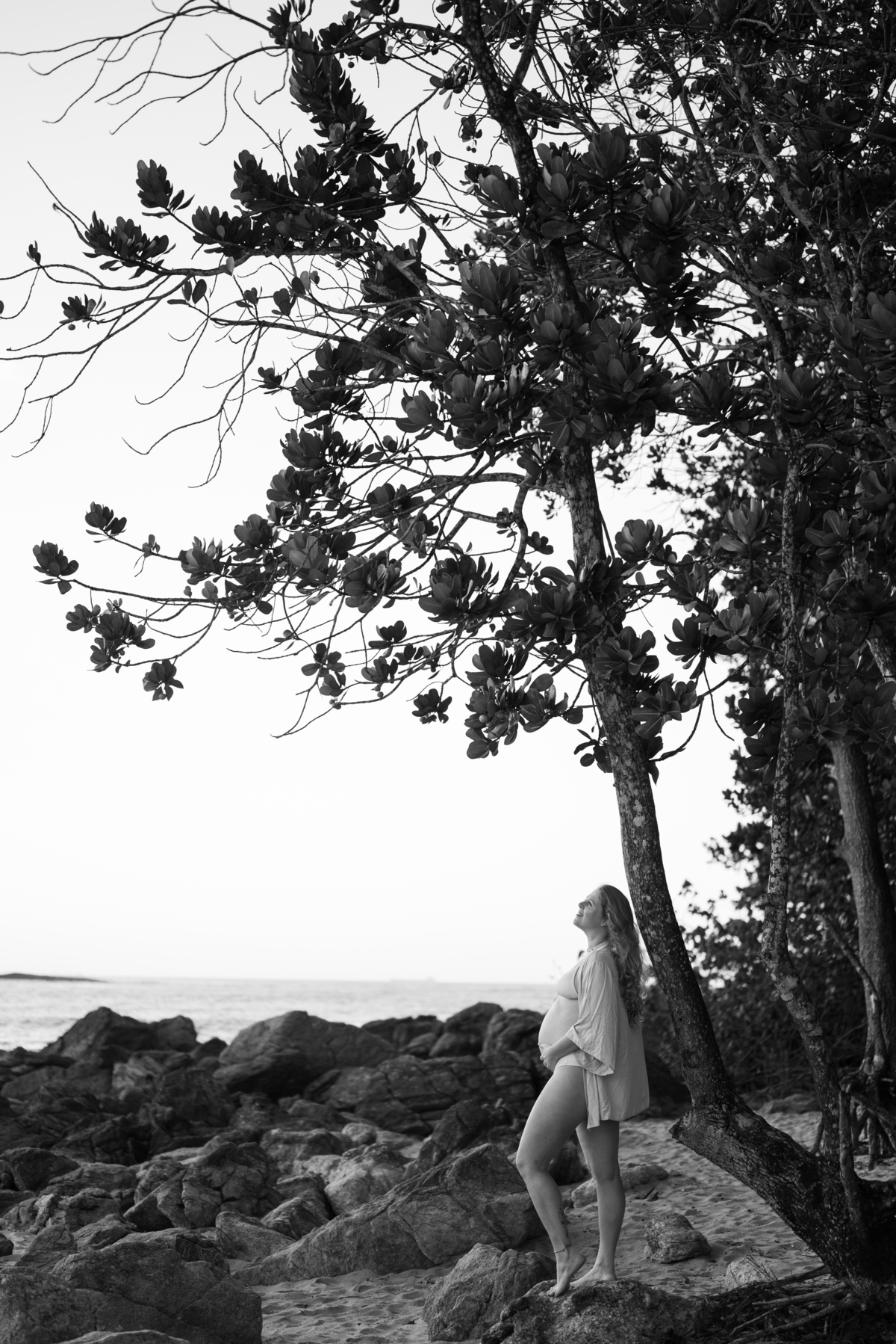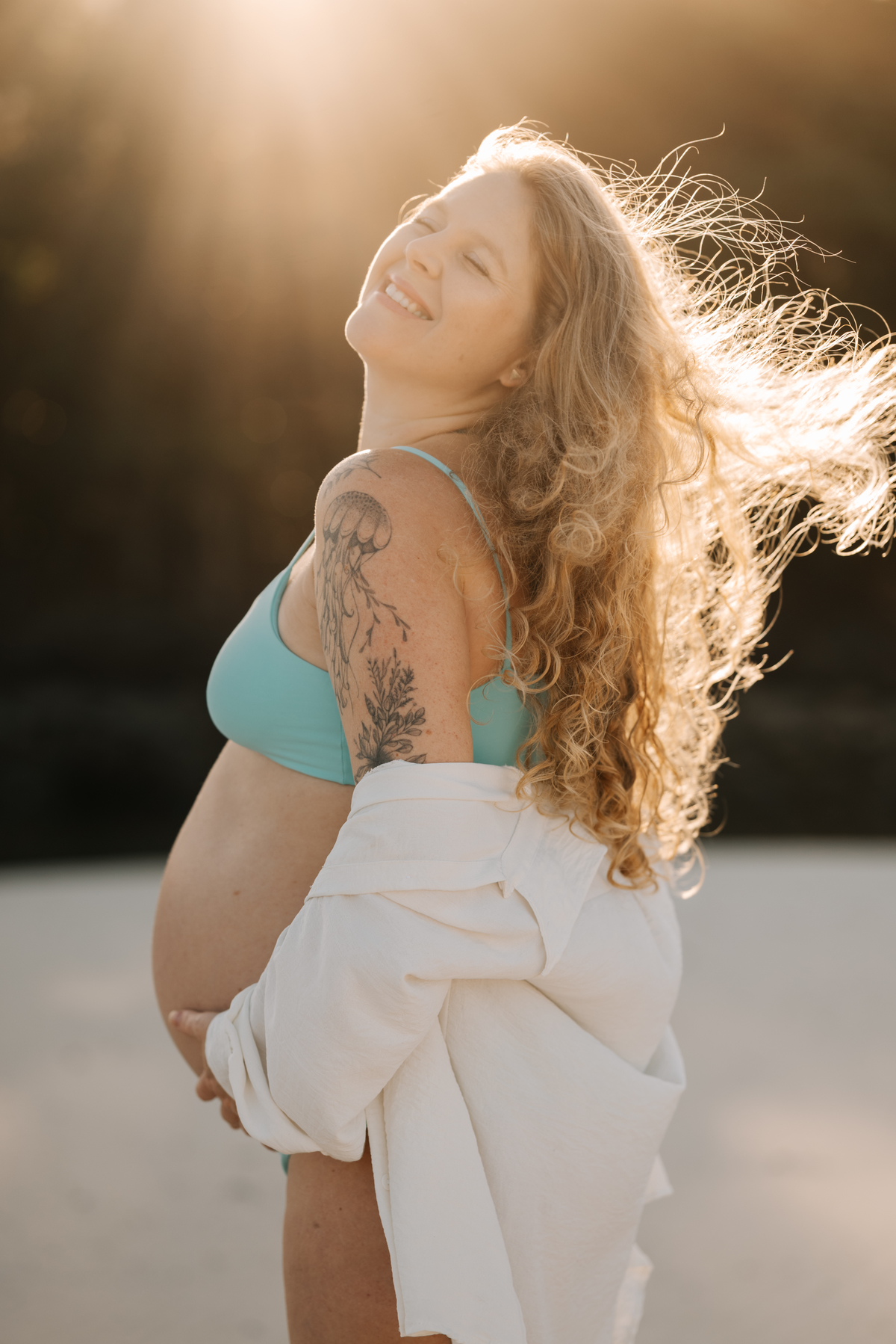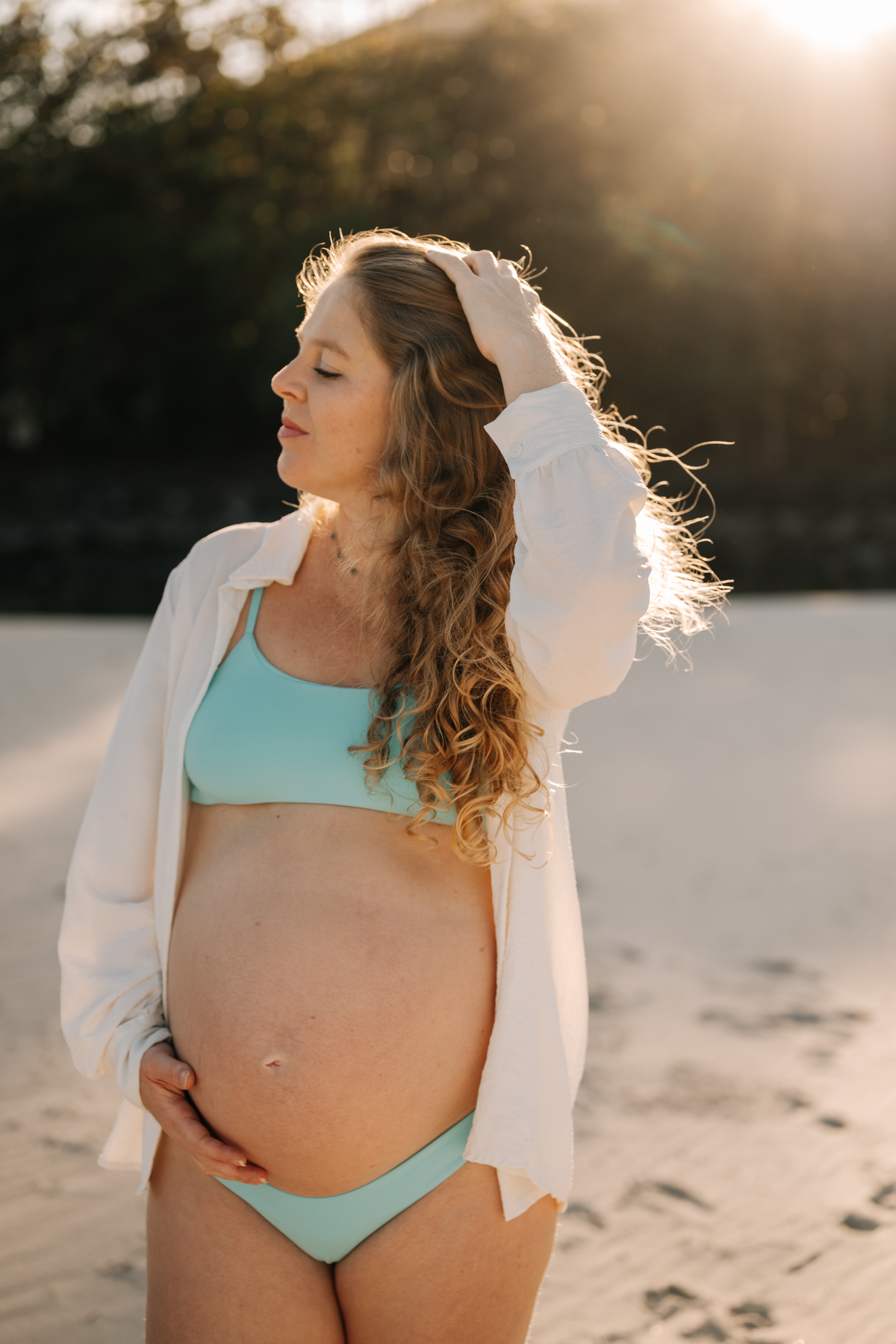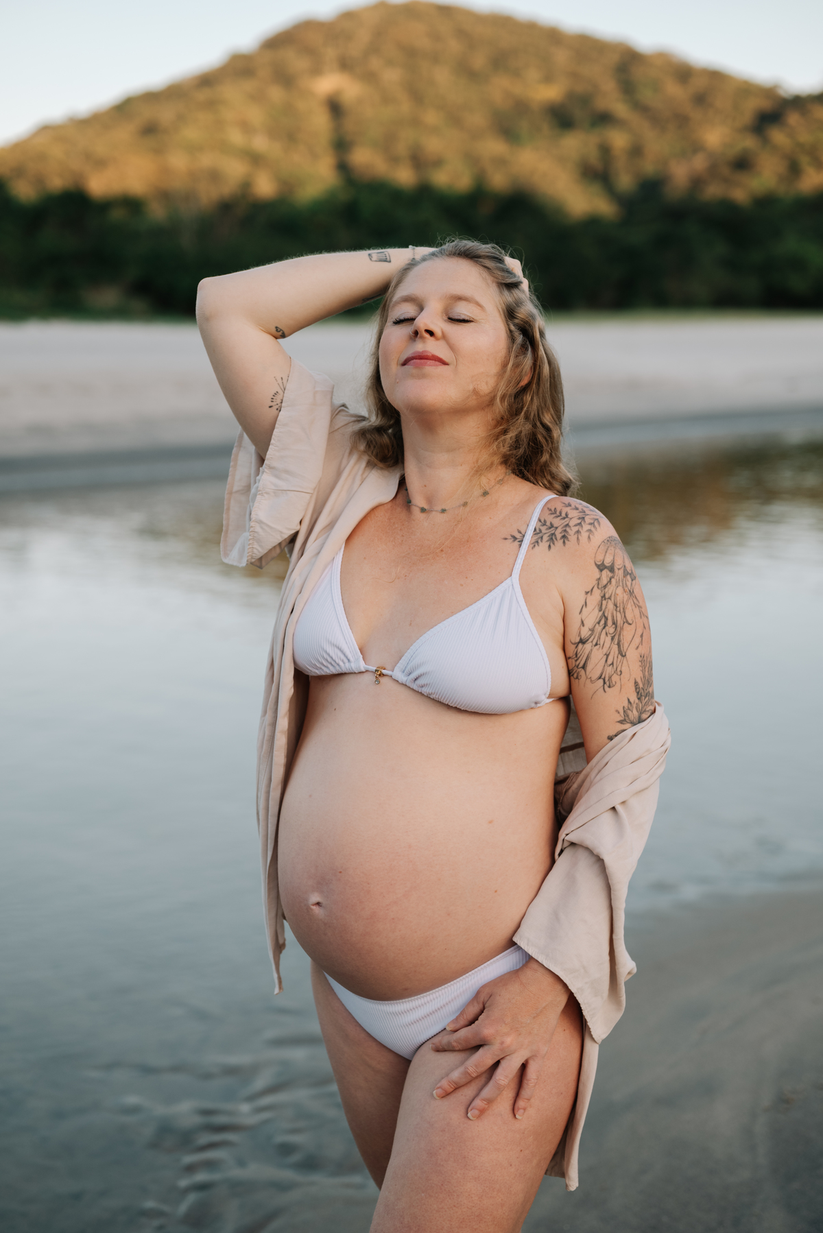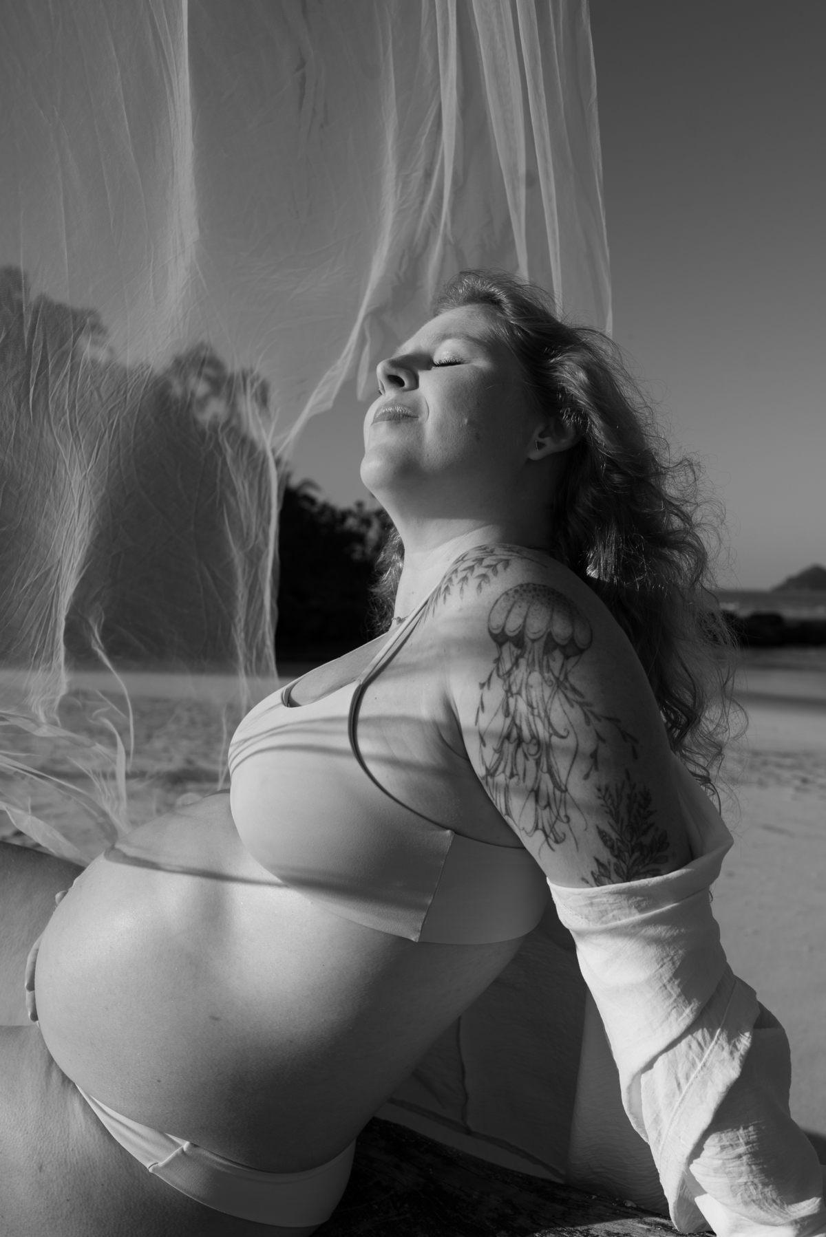 Essas foram as primeiras palavras da Nathalia quando conversamos sobre o **ensaio gestante em Camburi**, no litoral norte de São Paulo.