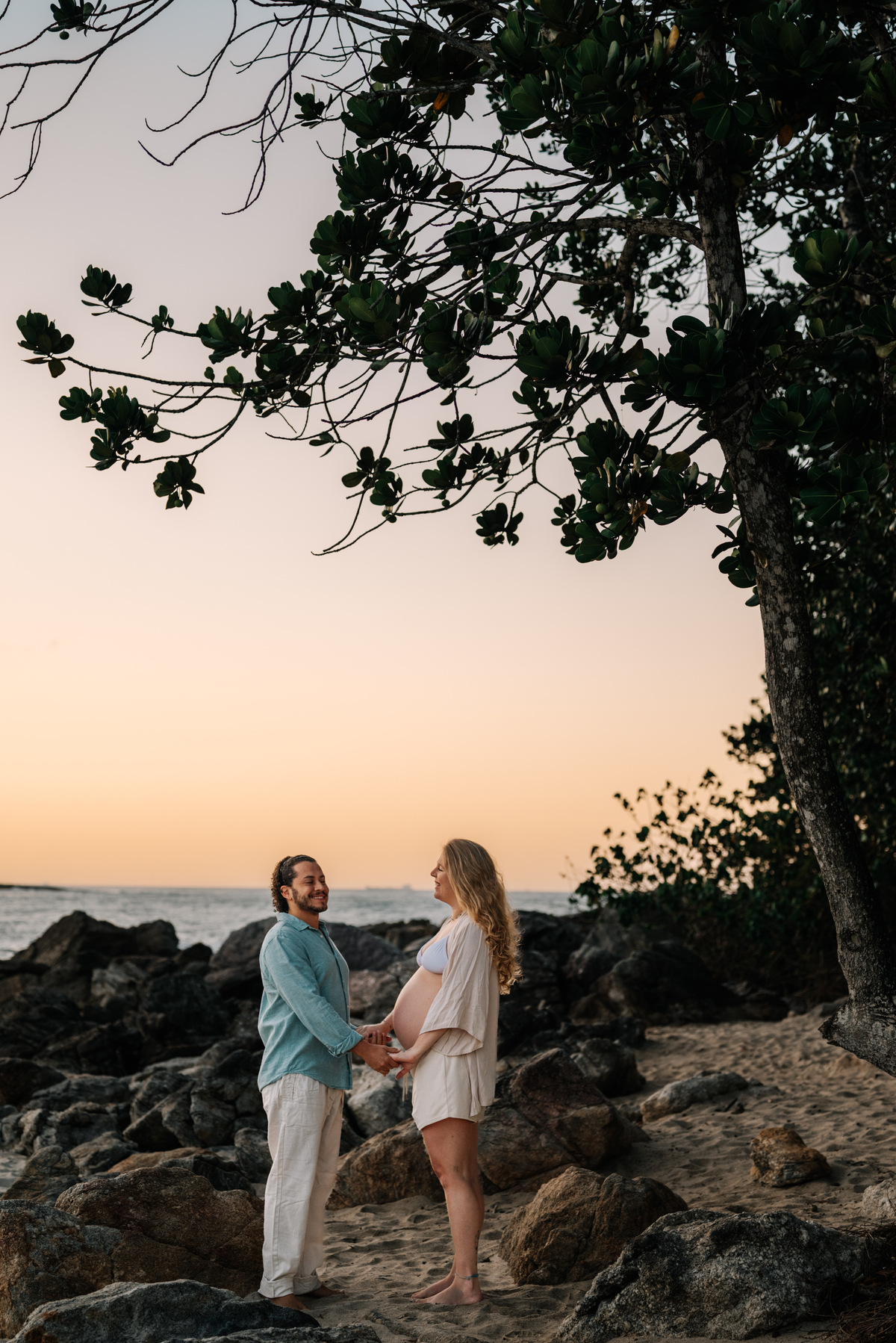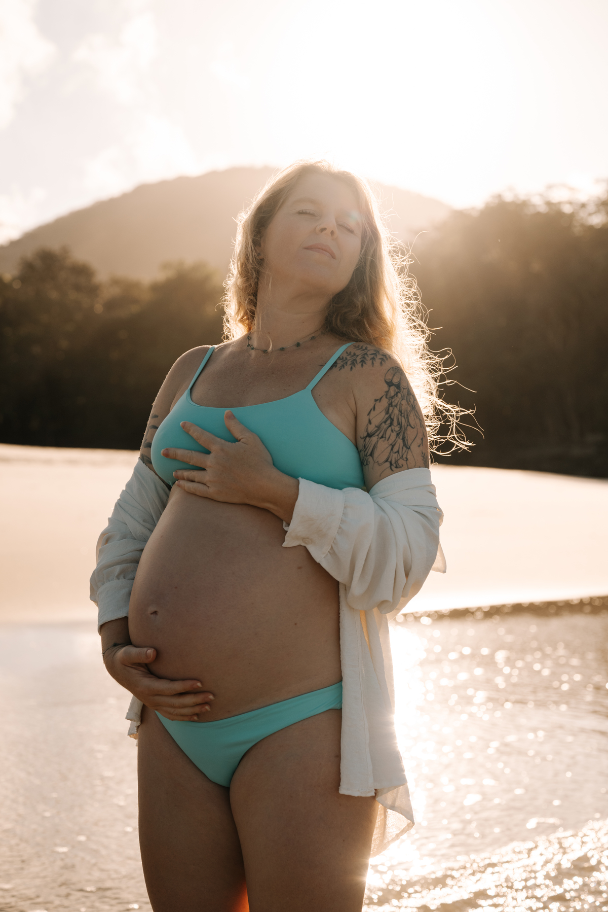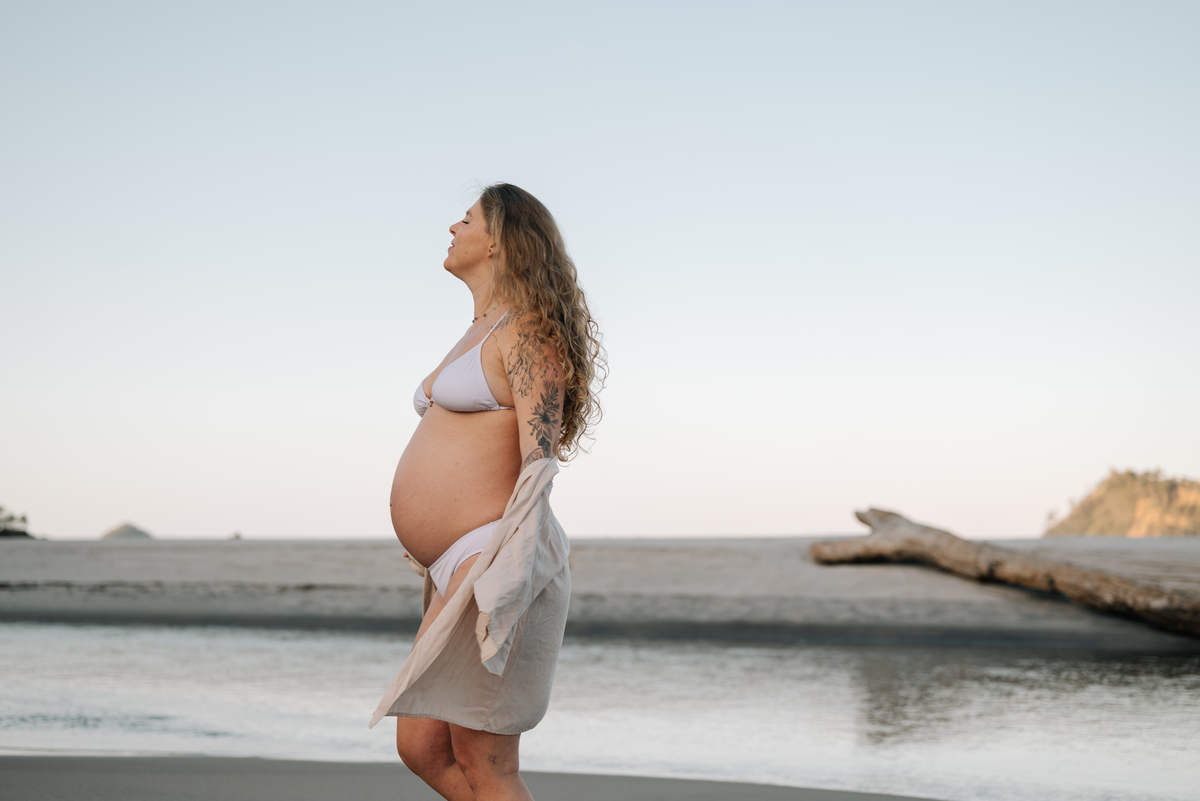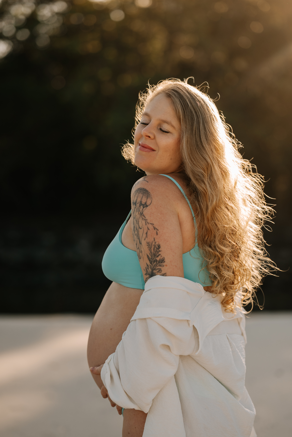 Essas foram as primeiras palavras da Nathalia quando conversamos sobre o **ensaio gestante em Camburi**, no litoral norte de São Paulo.