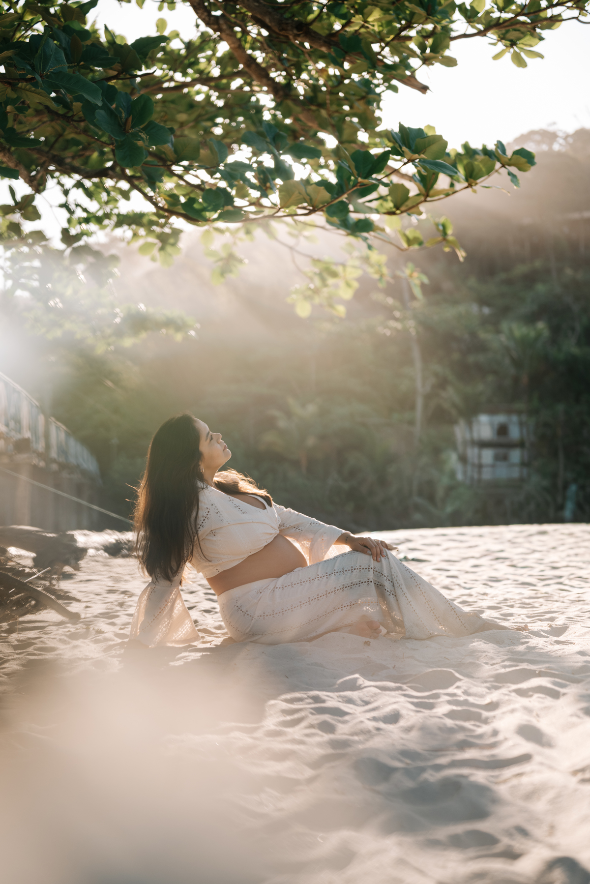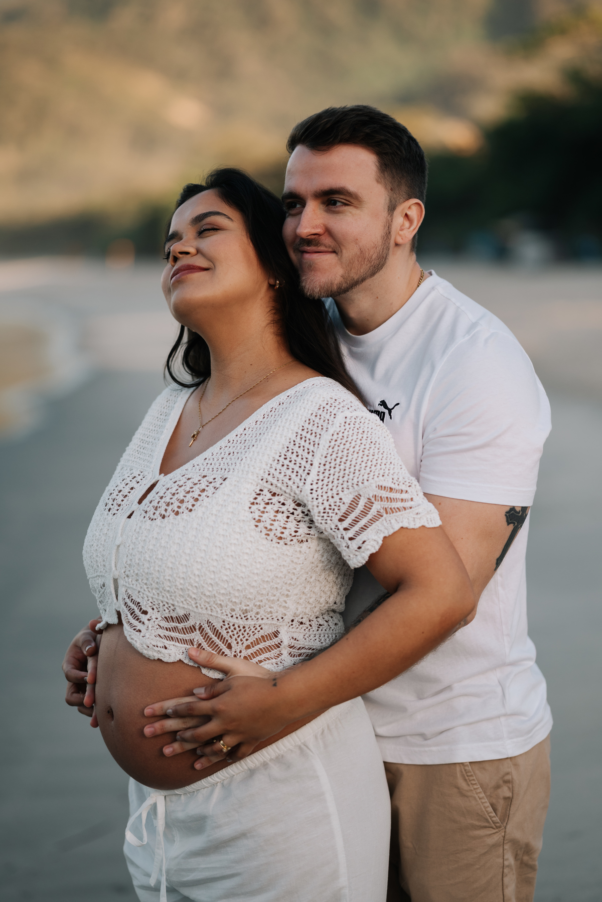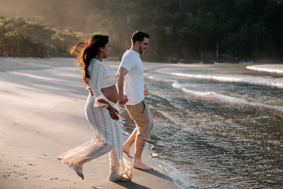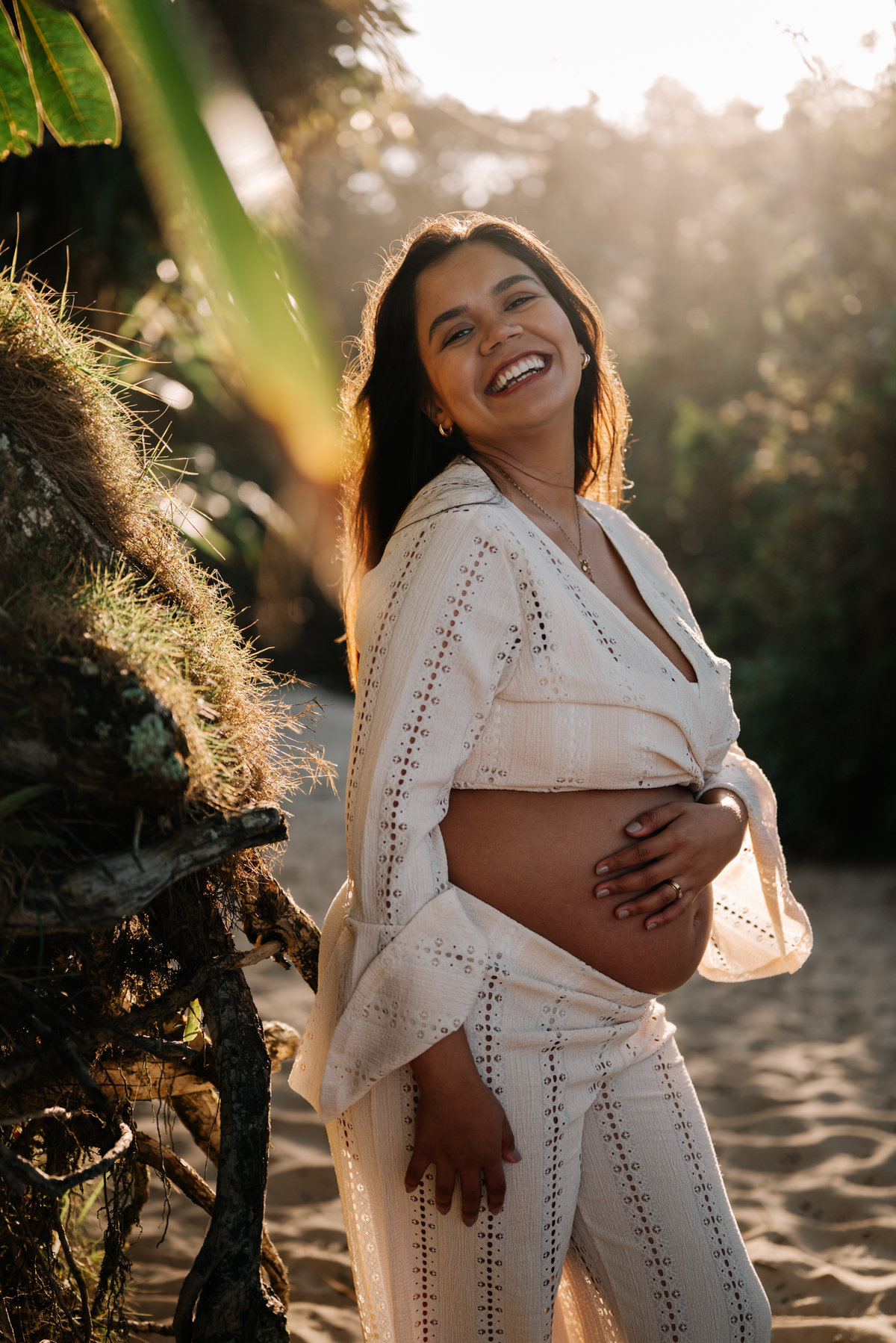 O ensaio gestante na Barra do Sahy, em São Sebastião, é um dos registros mais encantadores do litoral norte. No amanhecer, a praia fica silenciosa, a luz é suave , transformam cada clique em uma lembrança única.