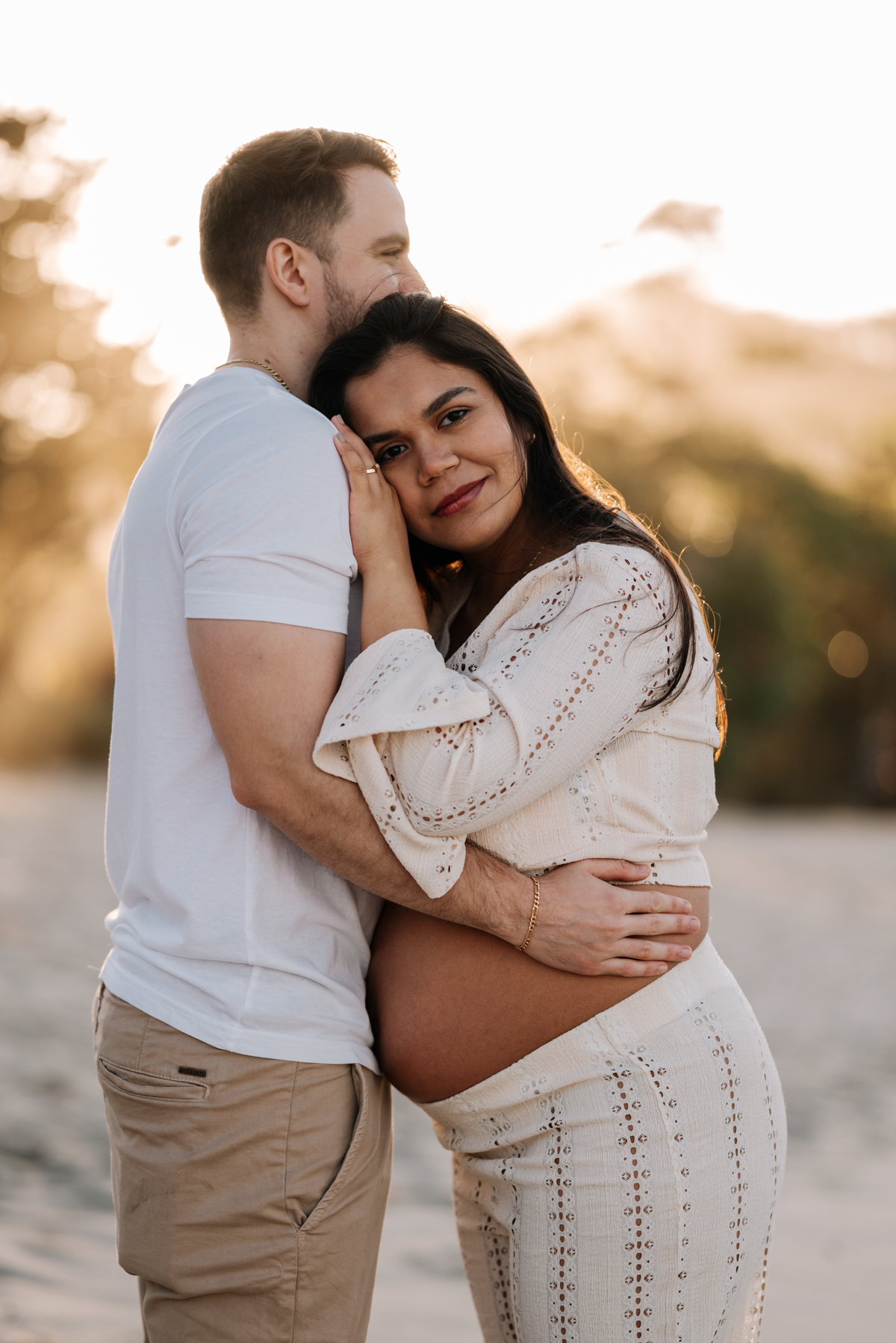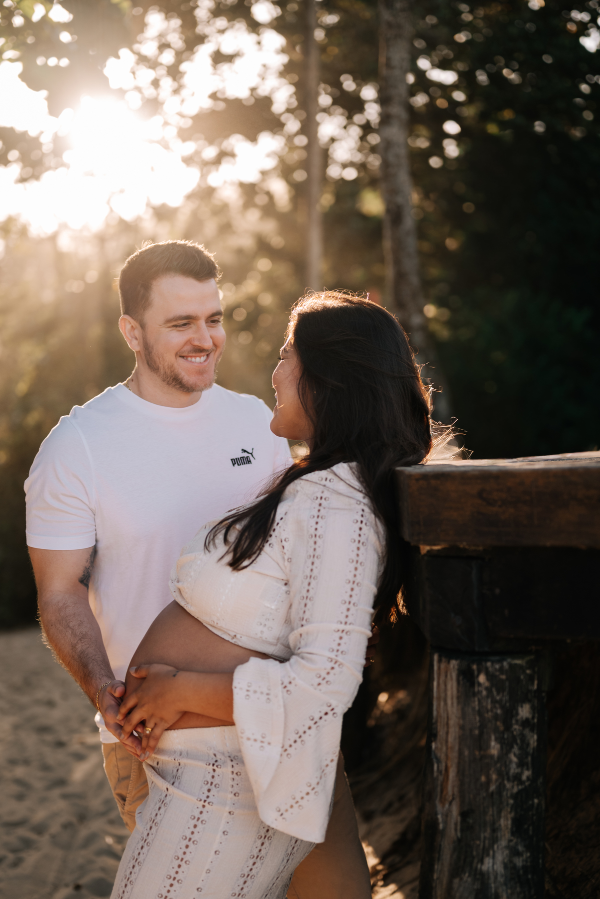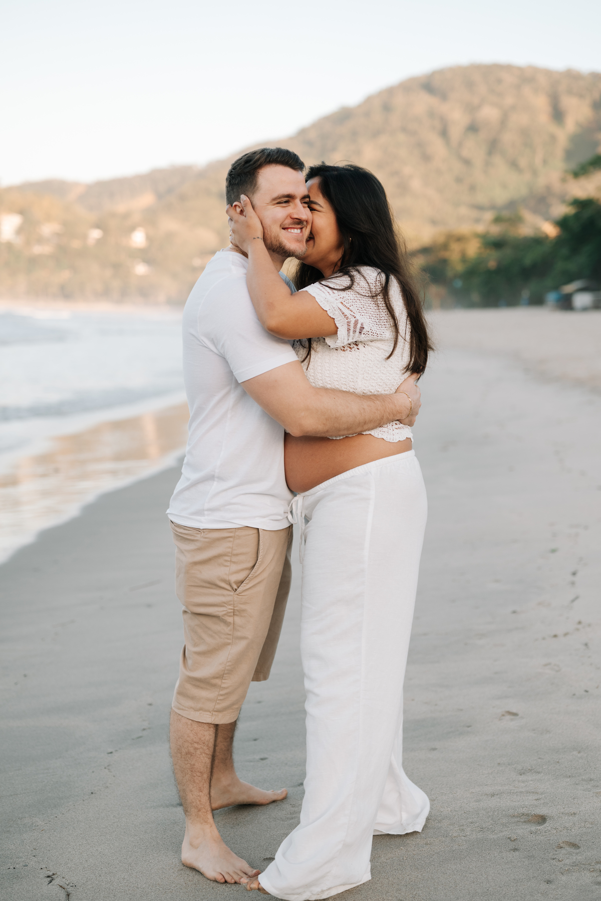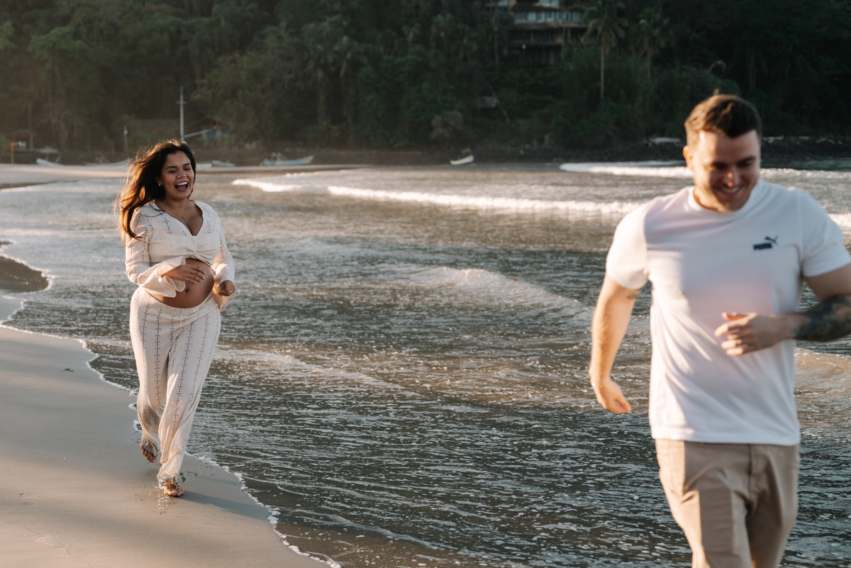 O ensaio gestante na Barra do Sahy, em São Sebastião, é um dos registros mais encantadores do litoral norte. No amanhecer, a praia fica silenciosa, a luz é suave , transformam cada clique em uma lembrança única.