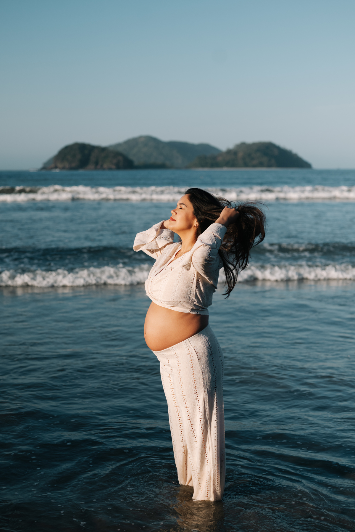 As fotos trazem a essência do estilo lifestyle, com cores suaves, movimento e espontaneidade. É a escolha perfeita para quem deseja um ensaio gestante na praia de São Sebastião ou Ilhabela que seja natural, minimalista e cheio de significado.