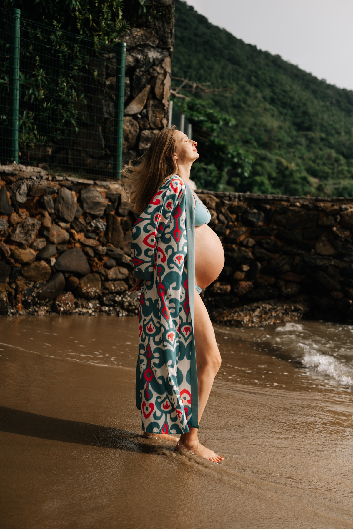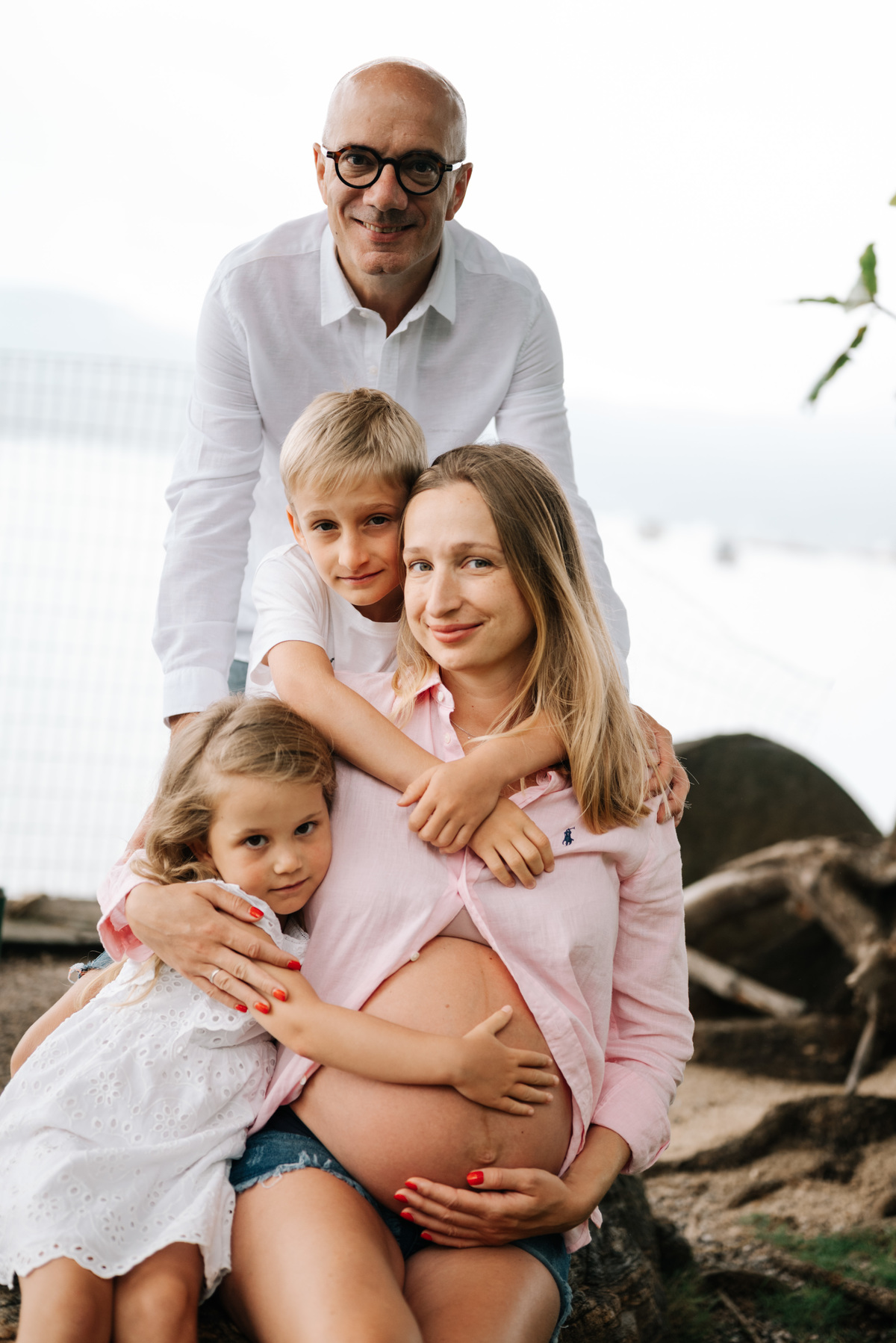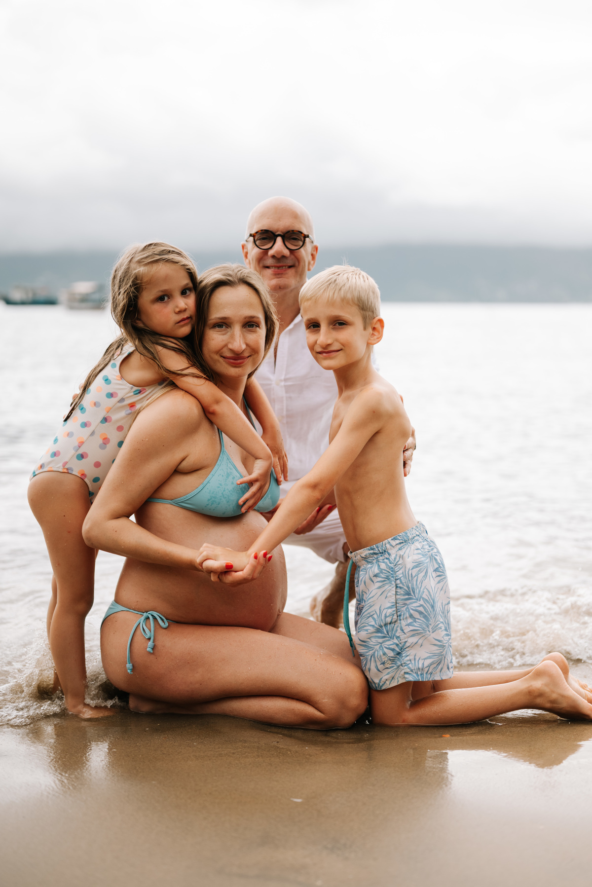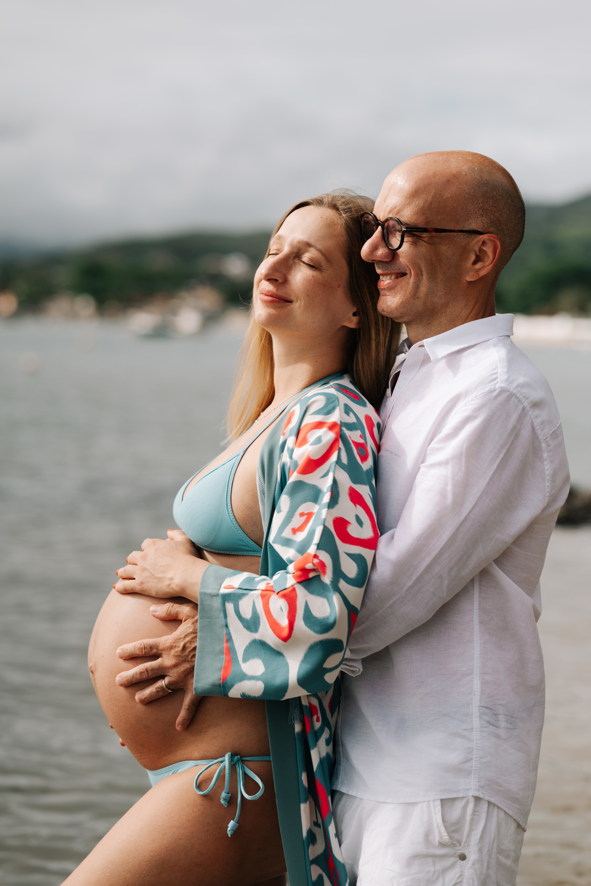 O ensaio gestante aconteceu em São Sebastião, começando na casa onde a família estava hospedada, com calma, conversa e tempo para se sentirem à vontade. Depois, seguimos para a praia, explorando o cenário natural, a luz e a liberdade que só o litoral oferece.