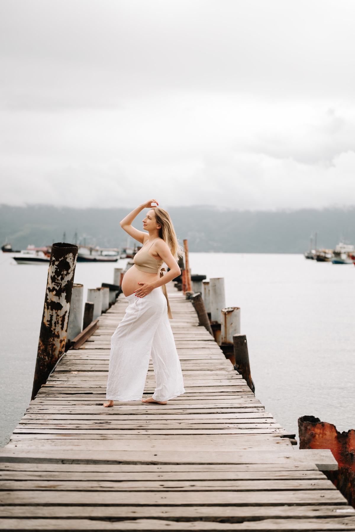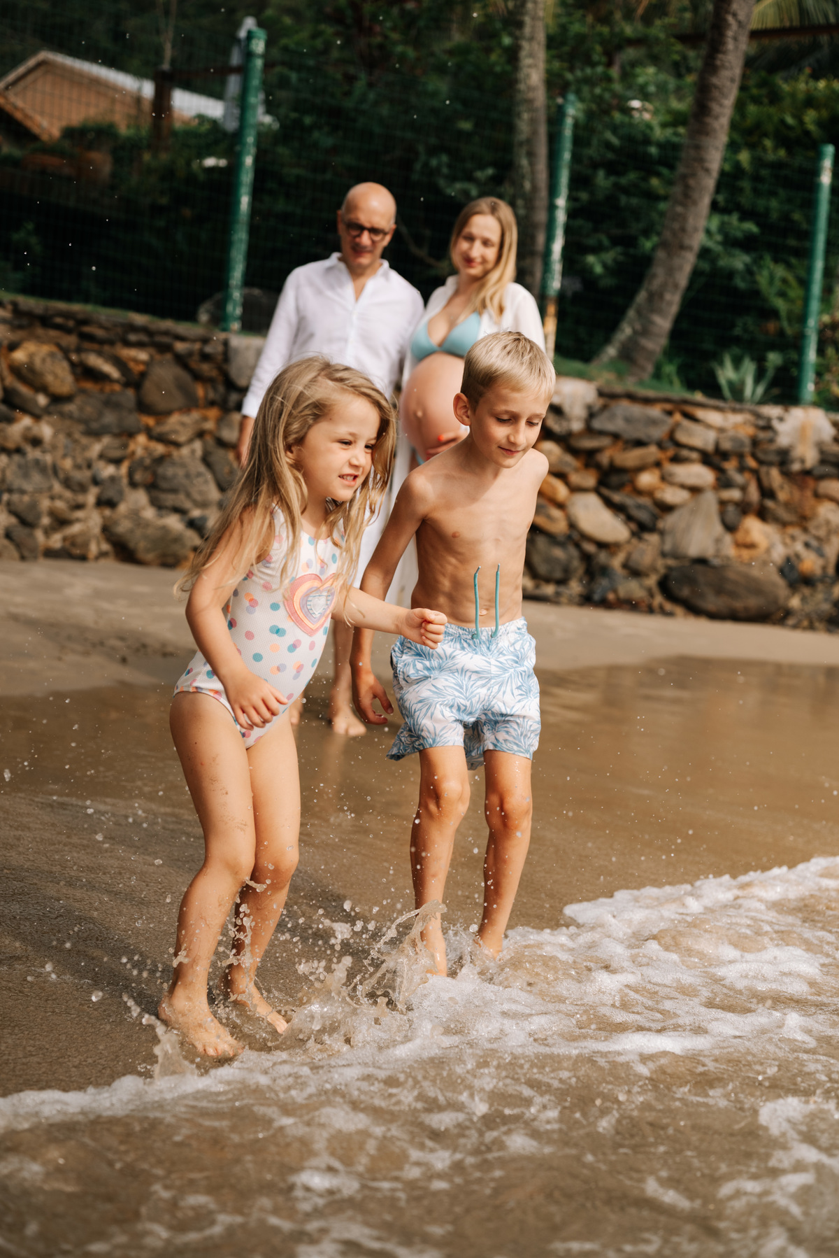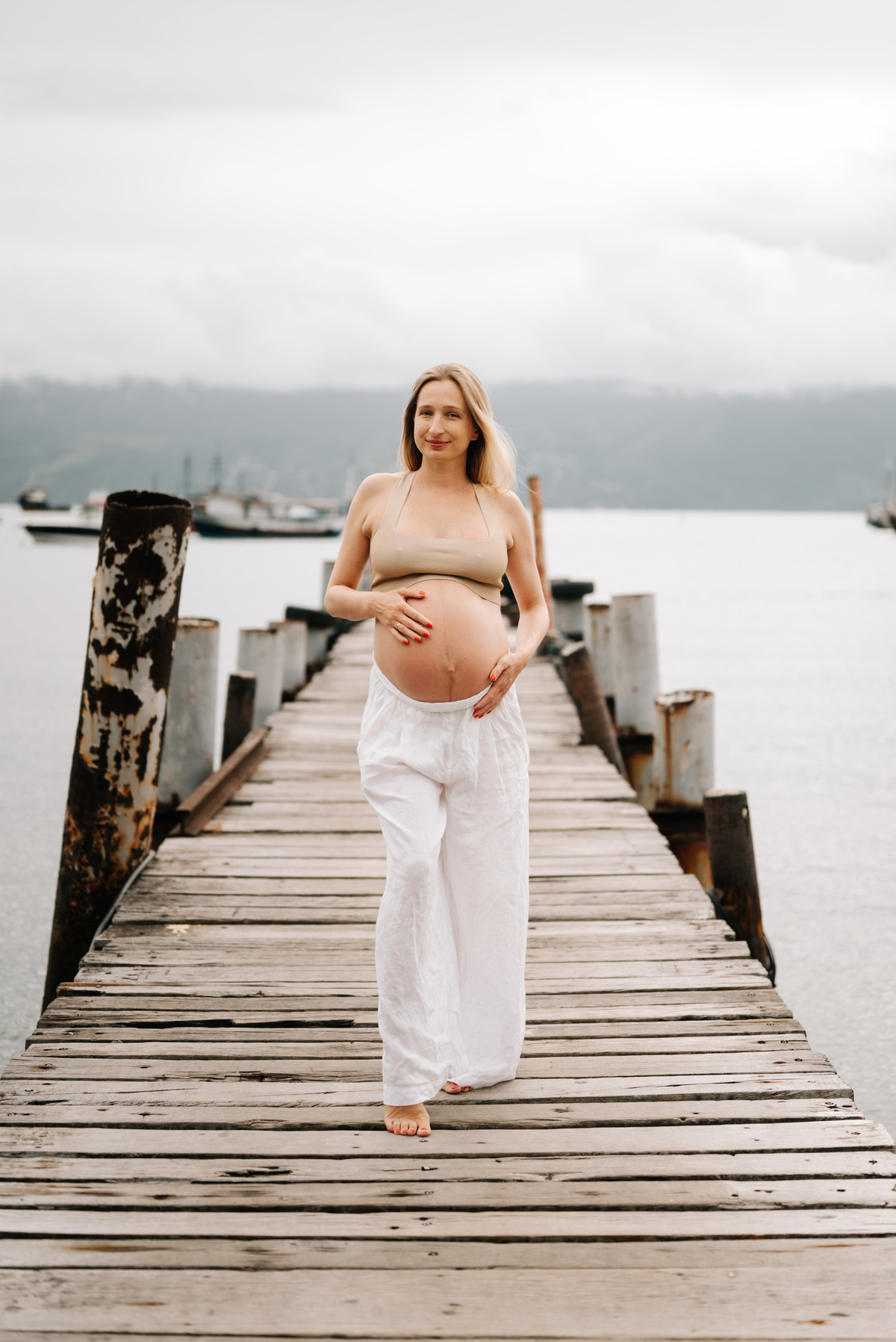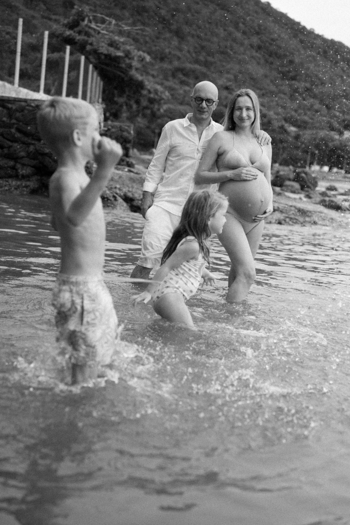 O ensaio gestante aconteceu em São Sebastião, começando na casa onde a família estava hospedada, com calma, conversa e tempo para se sentirem à vontade. Depois, seguimos para a praia, explorando o cenário natural, a luz e a liberdade que só o litoral oferece.