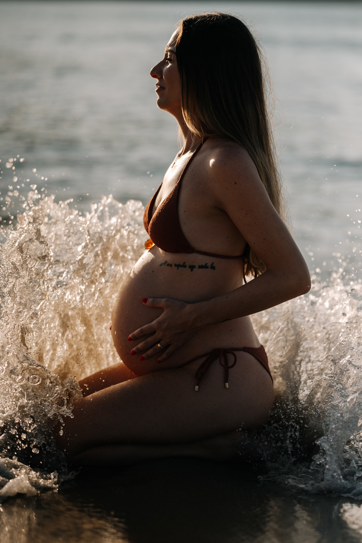 O amanhecer em Camburi tem um ritmo próprio. A luz nasce devagar, o mar ainda está calmo e a praia ganha um silêncio raro — perfeito para viver a gestação com presença e tranquilidade.