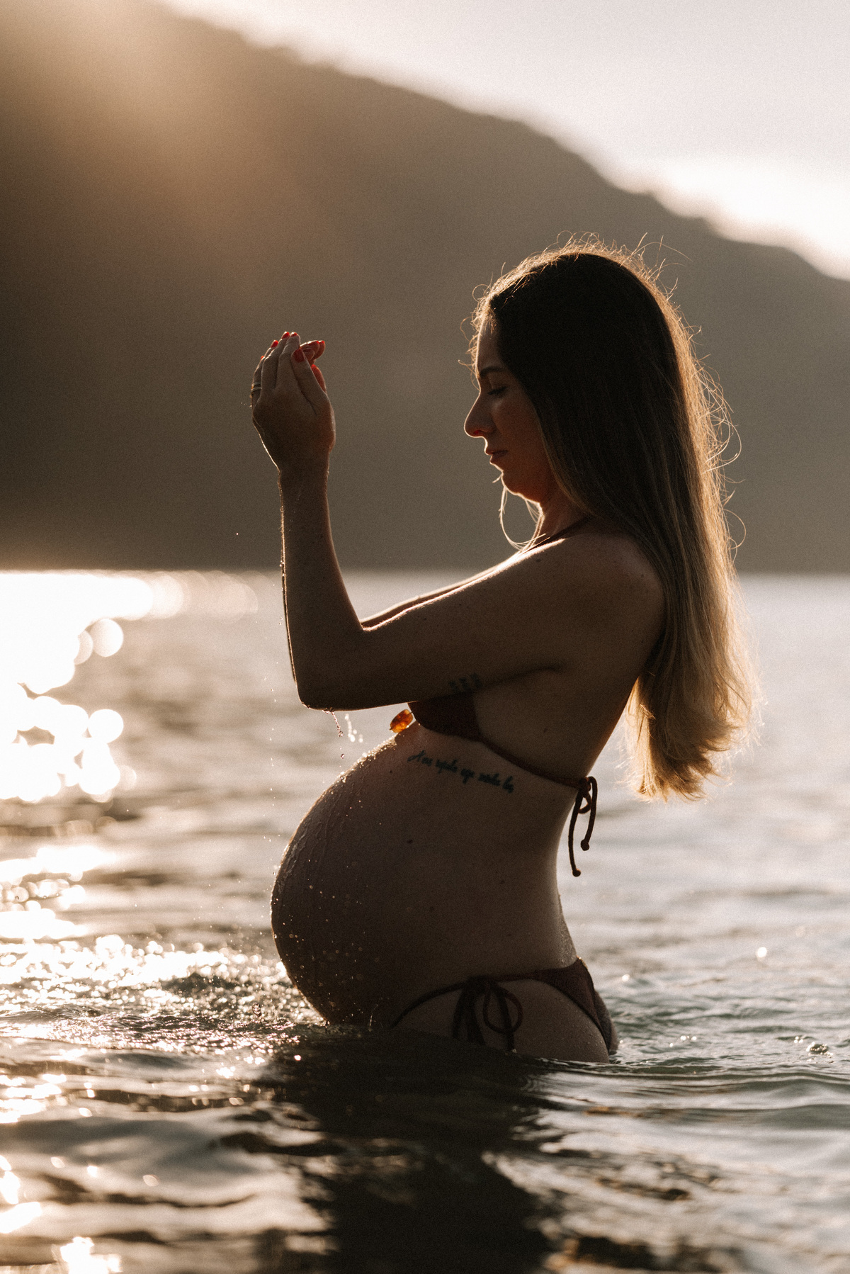 Fotografia de gestante na praia | Amanhecer